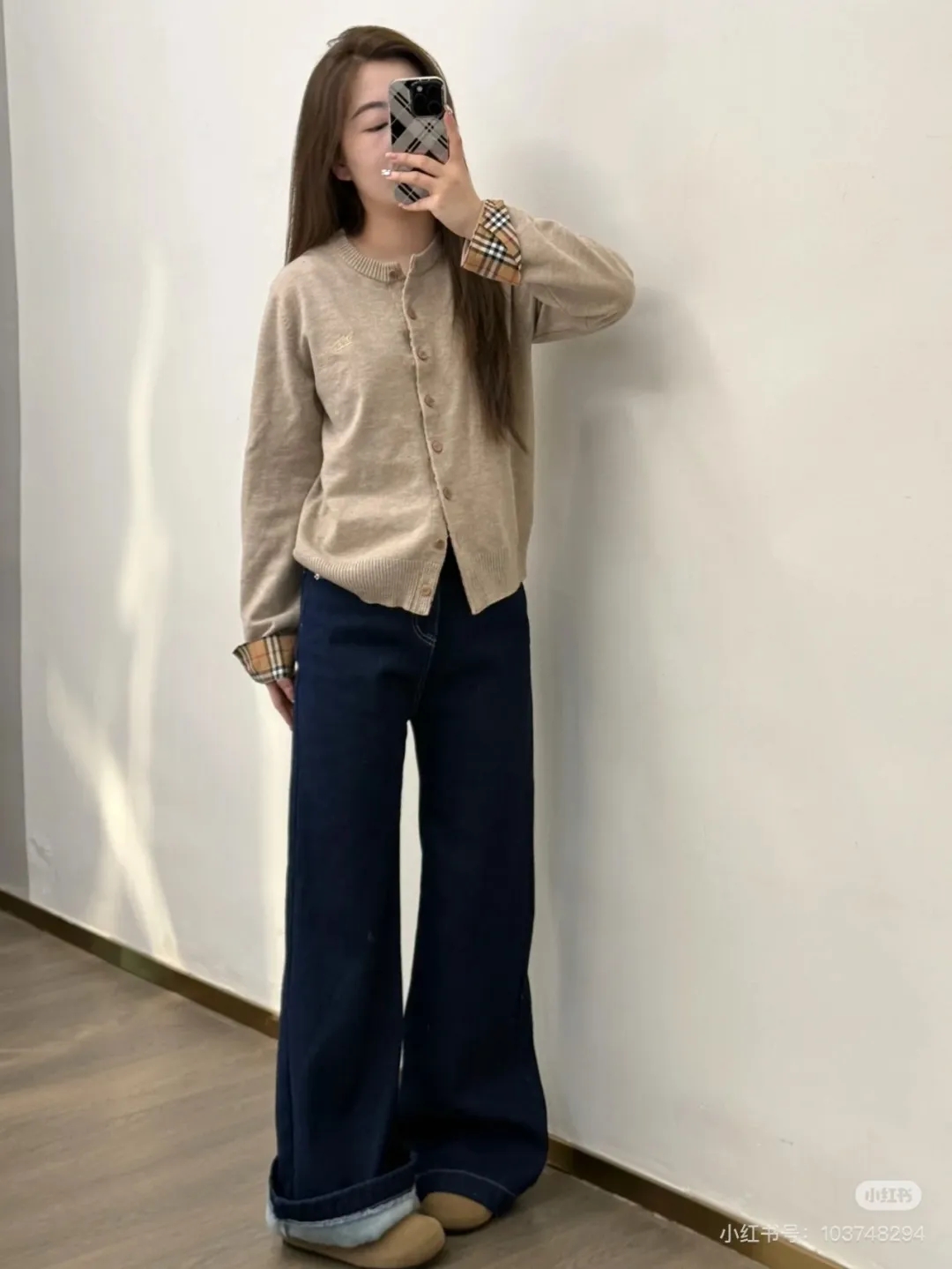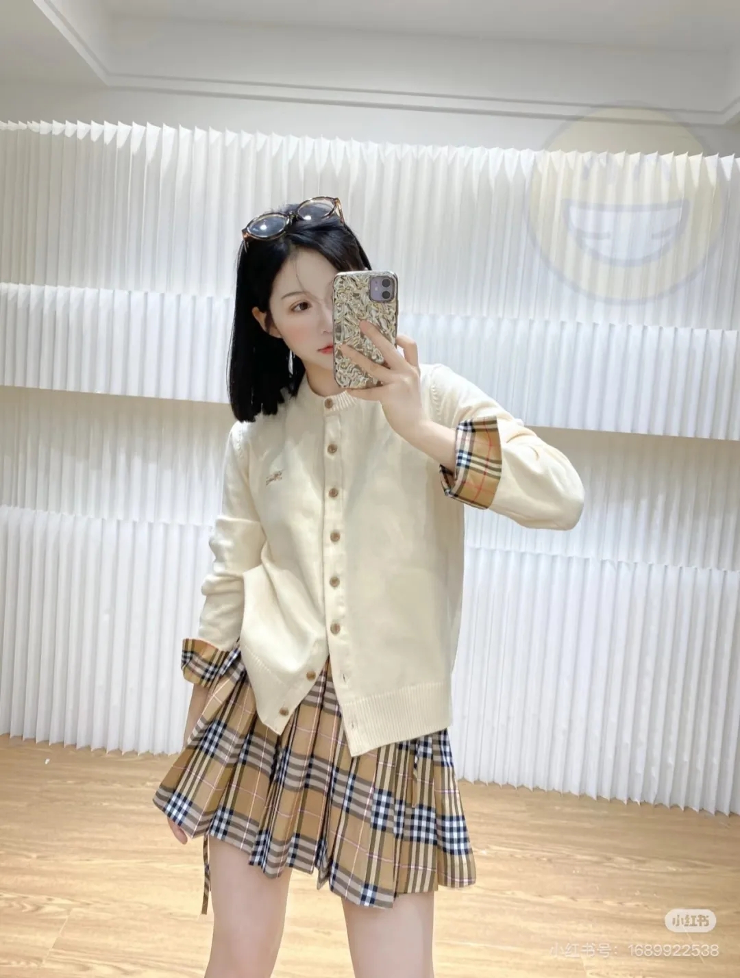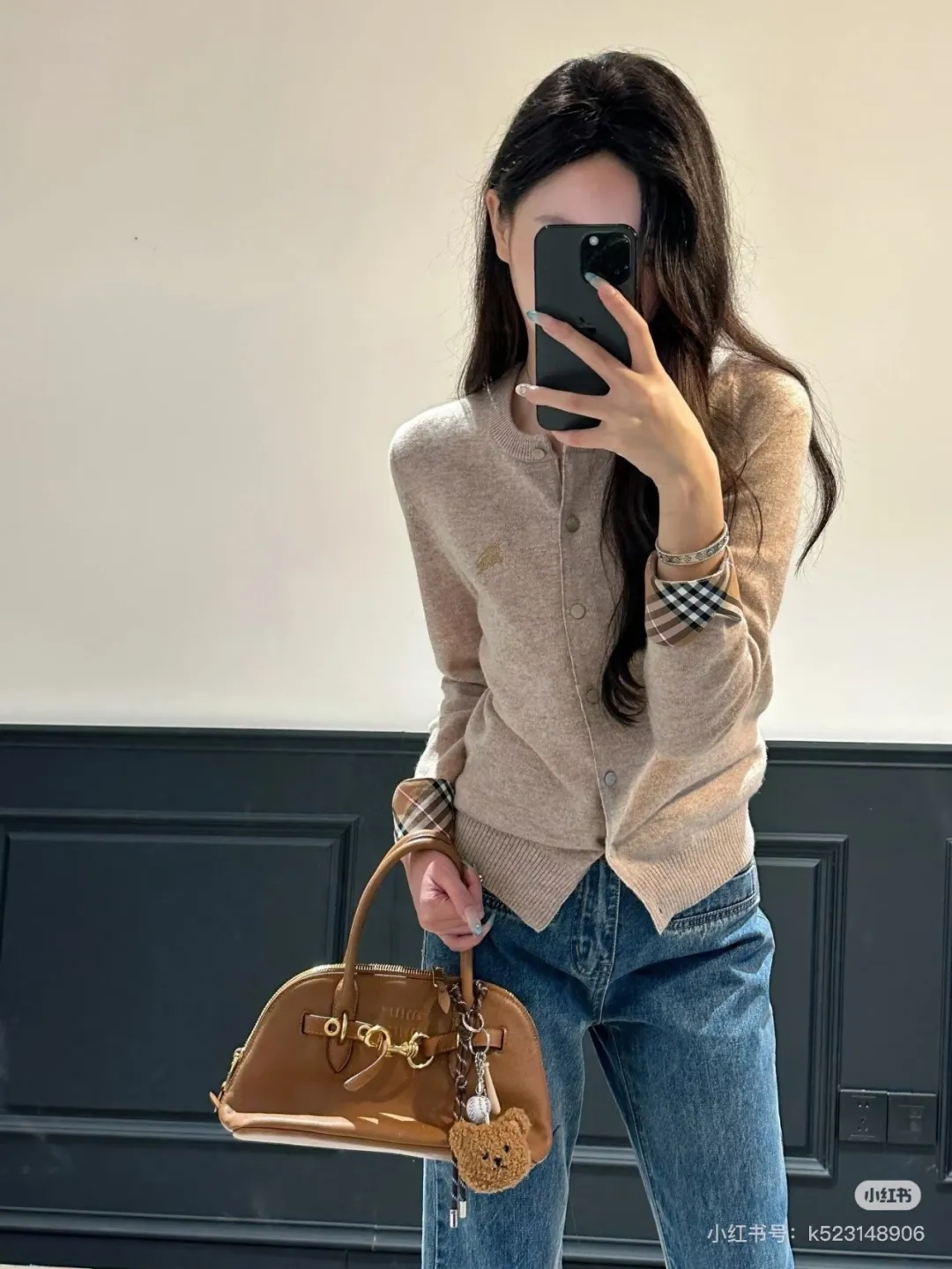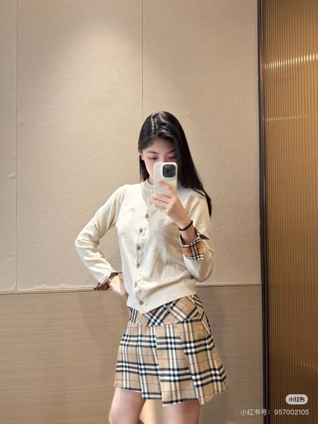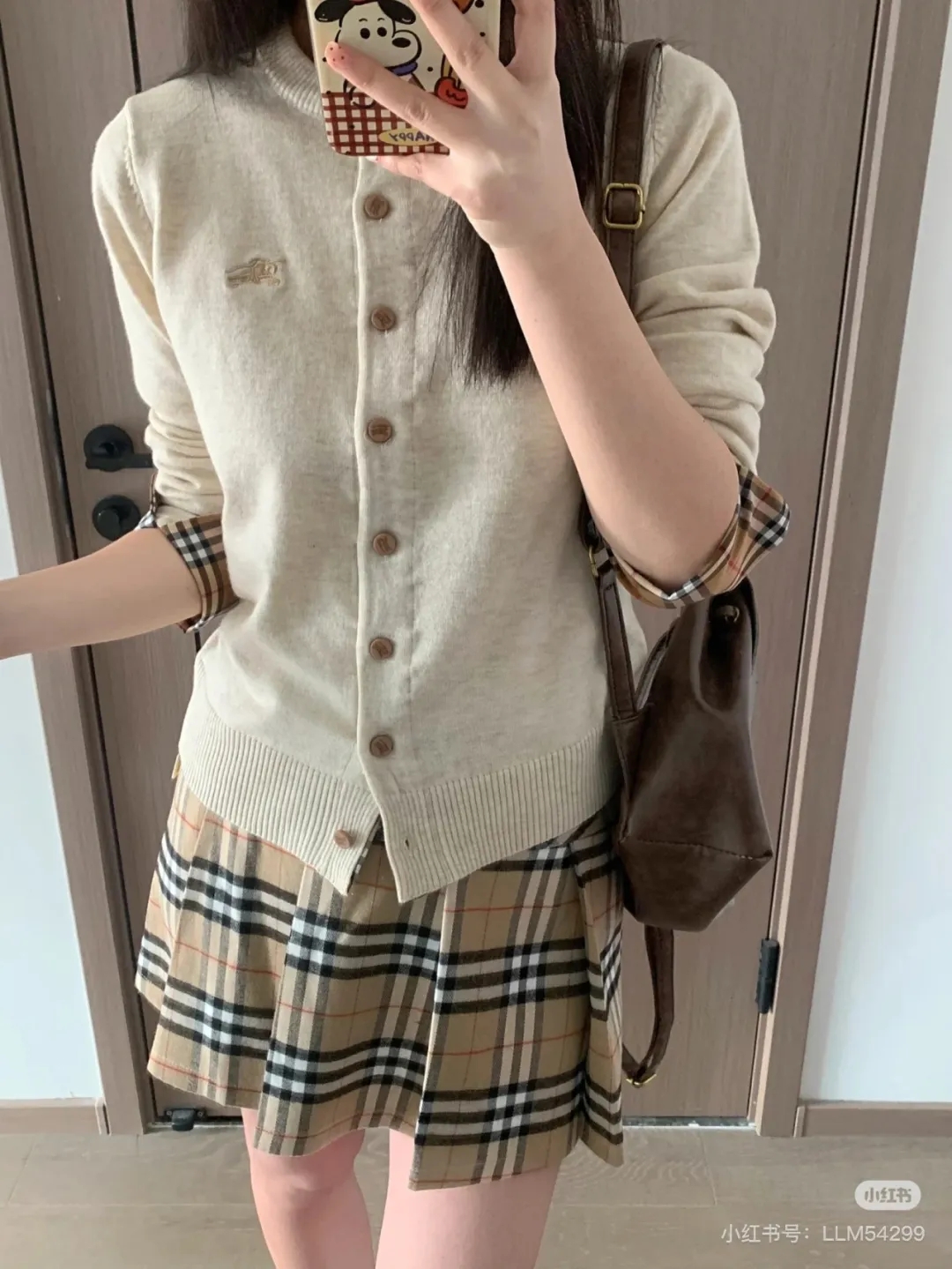 软糯~bur|战马 25秋冬精仿羊毛梭织经典格纹撞色圆领开衫!定制刻磨纽扣+胸口刺绣学院风女针织外套