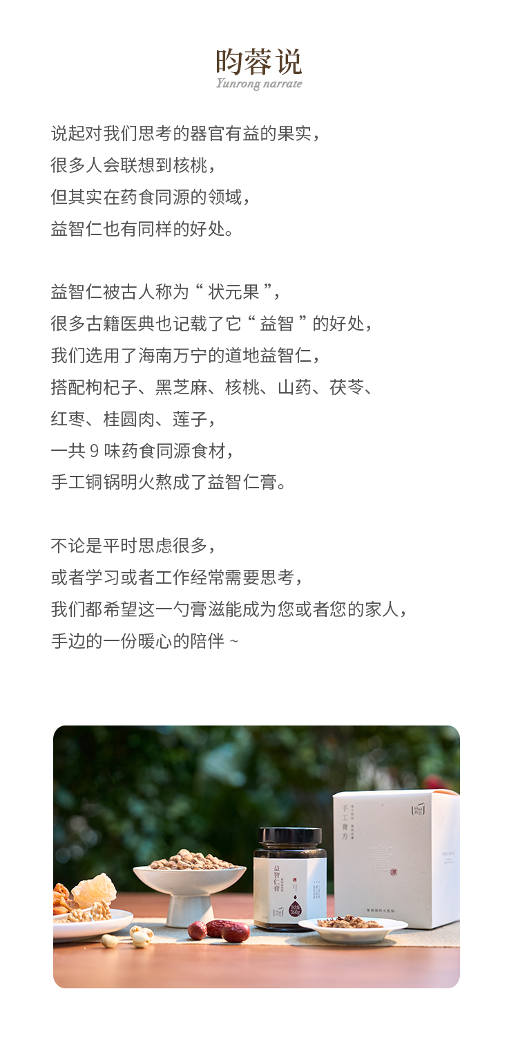 【昀蓉时光·益智仁膏】 精选海南万宁益智仁 9味食材温和滋养 纯手工慢火熬制18小时 凝练成膏 0 防腐剂0添加 360g/瓶