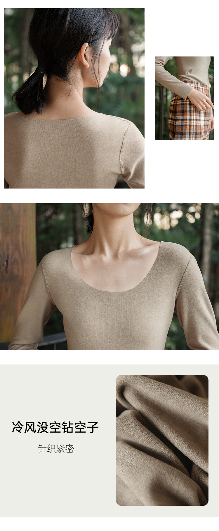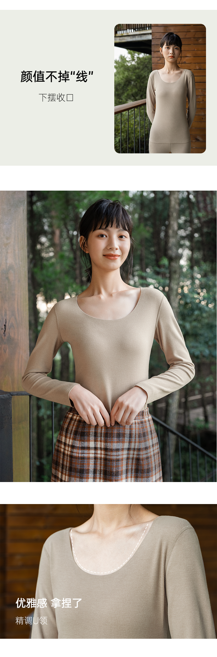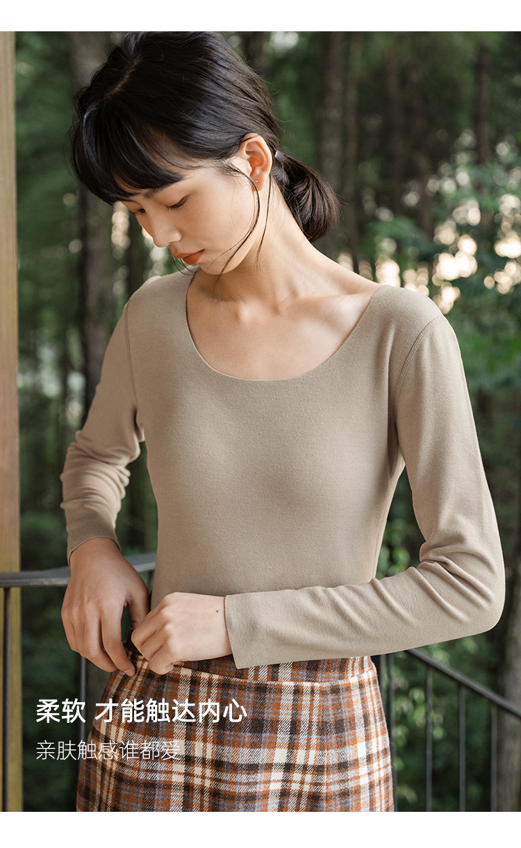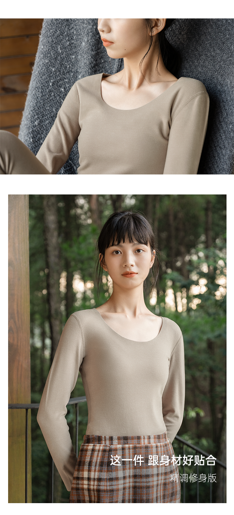 靴下物美雅碧自发热保暖上衣女秋冬季双面磨毛保暖内衣大圆领无痕