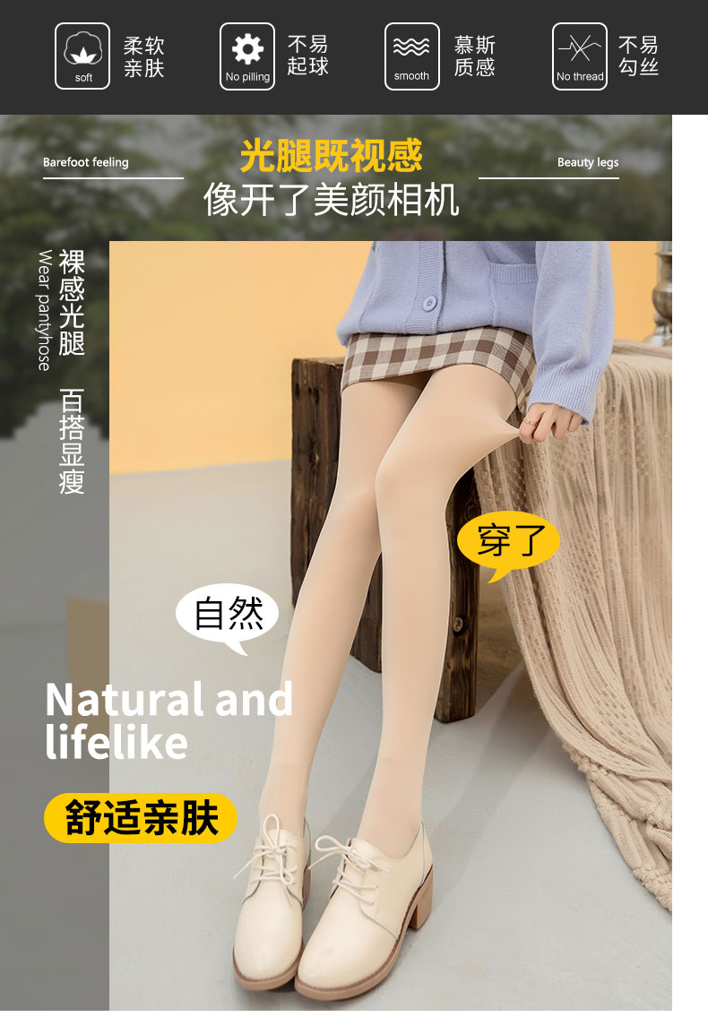 【小仙女必备】安梨口袋 美肌光腿神器春夏秋冬四季裸感自然肉色打底裤连裤袜肤色黑色连脚款