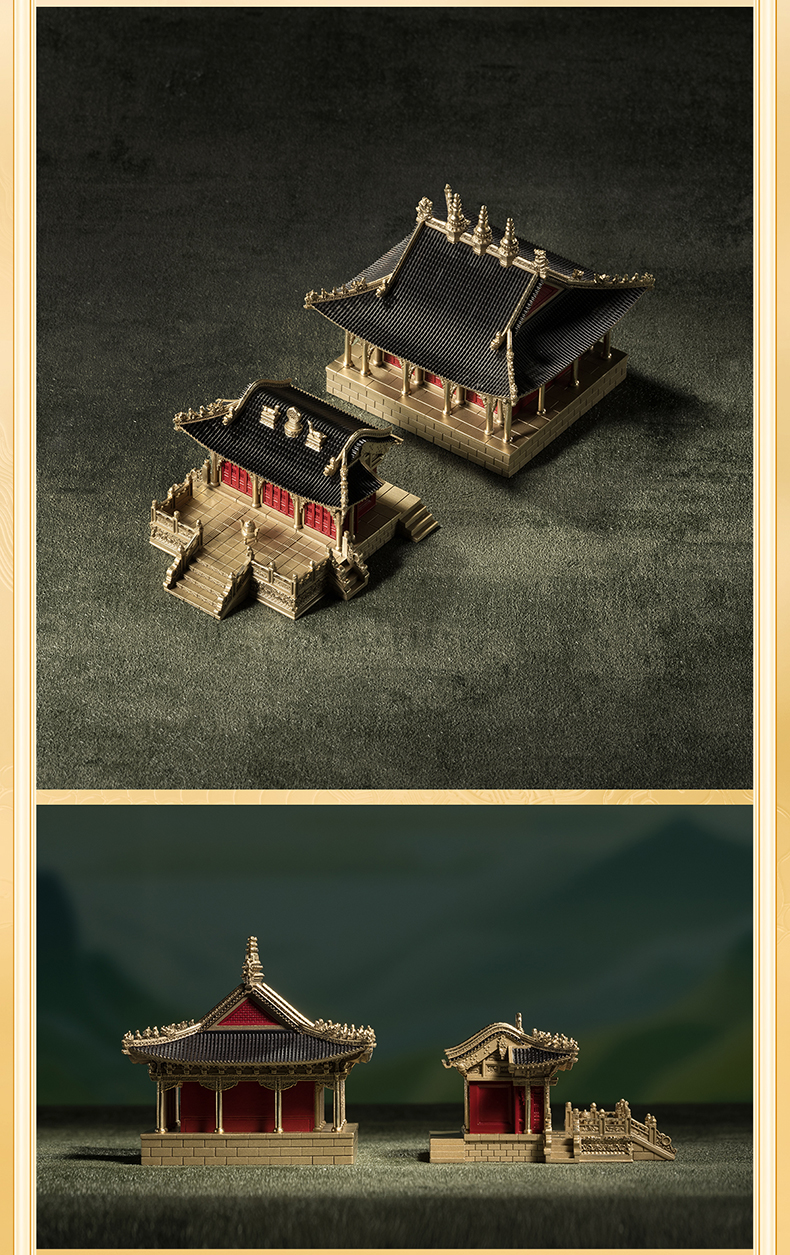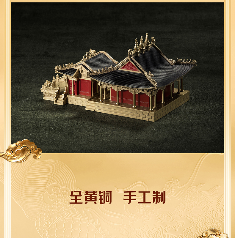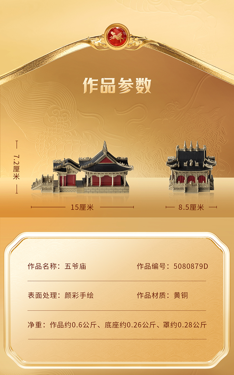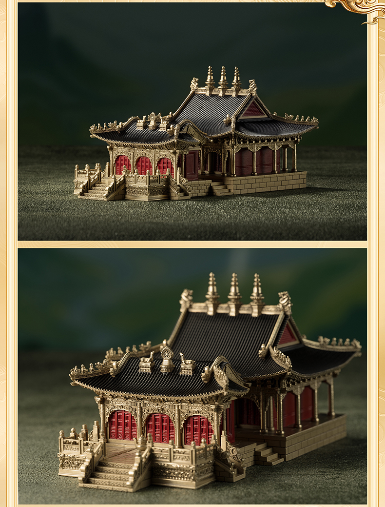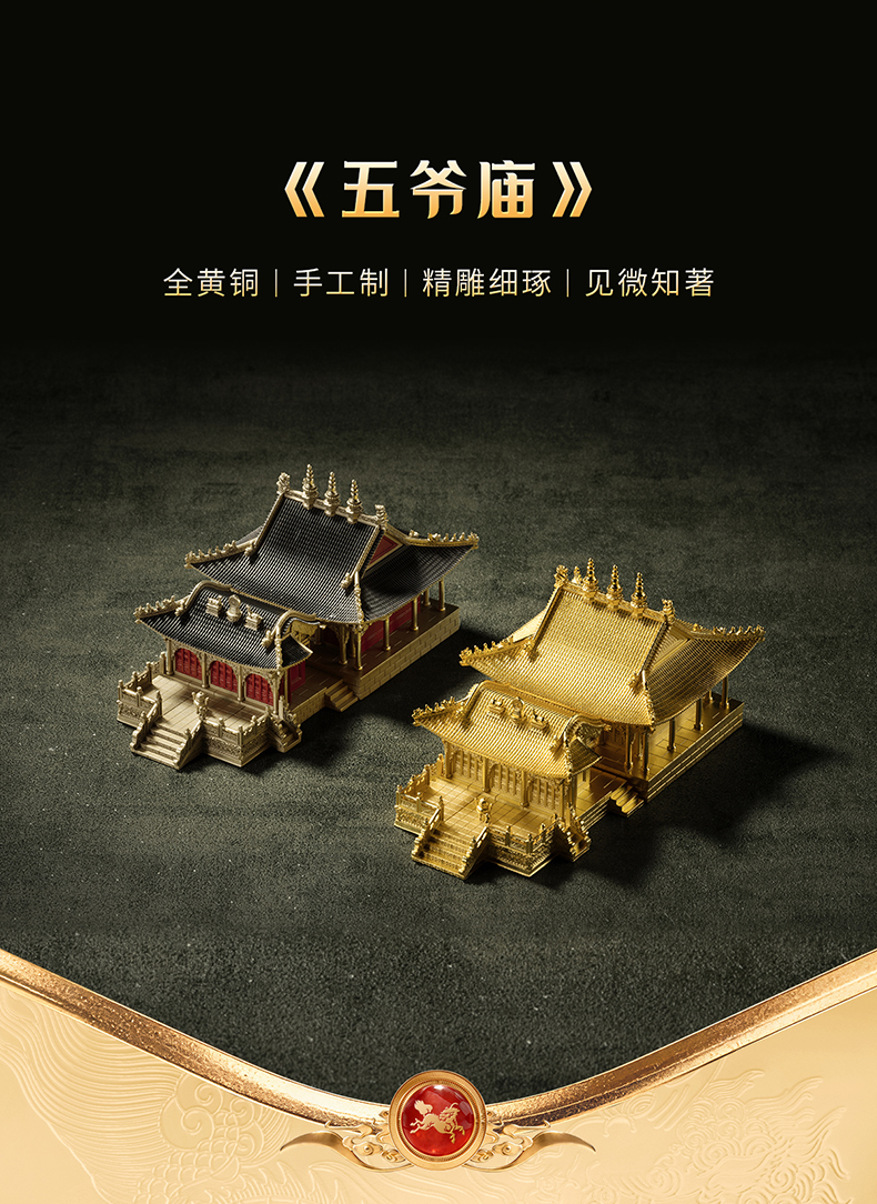 铜师傅 见微系列《五爷庙》 客厅桌面龙王庙寺庙铜工艺品家居摆件