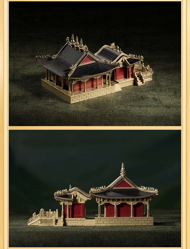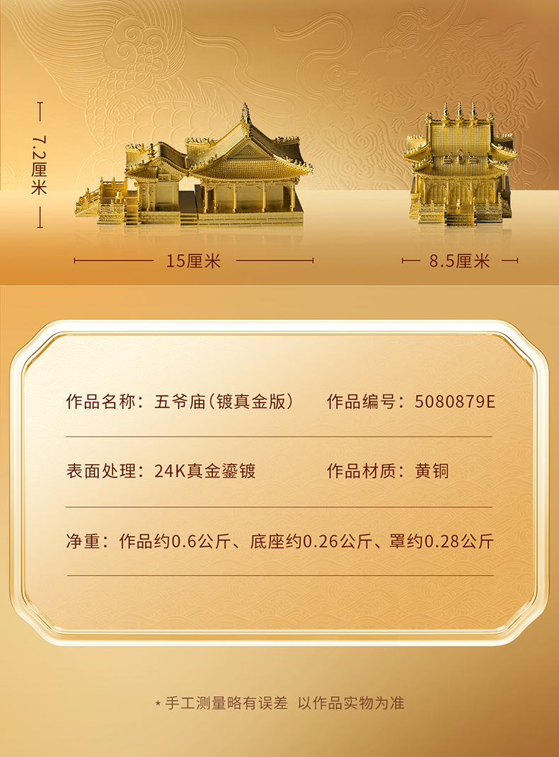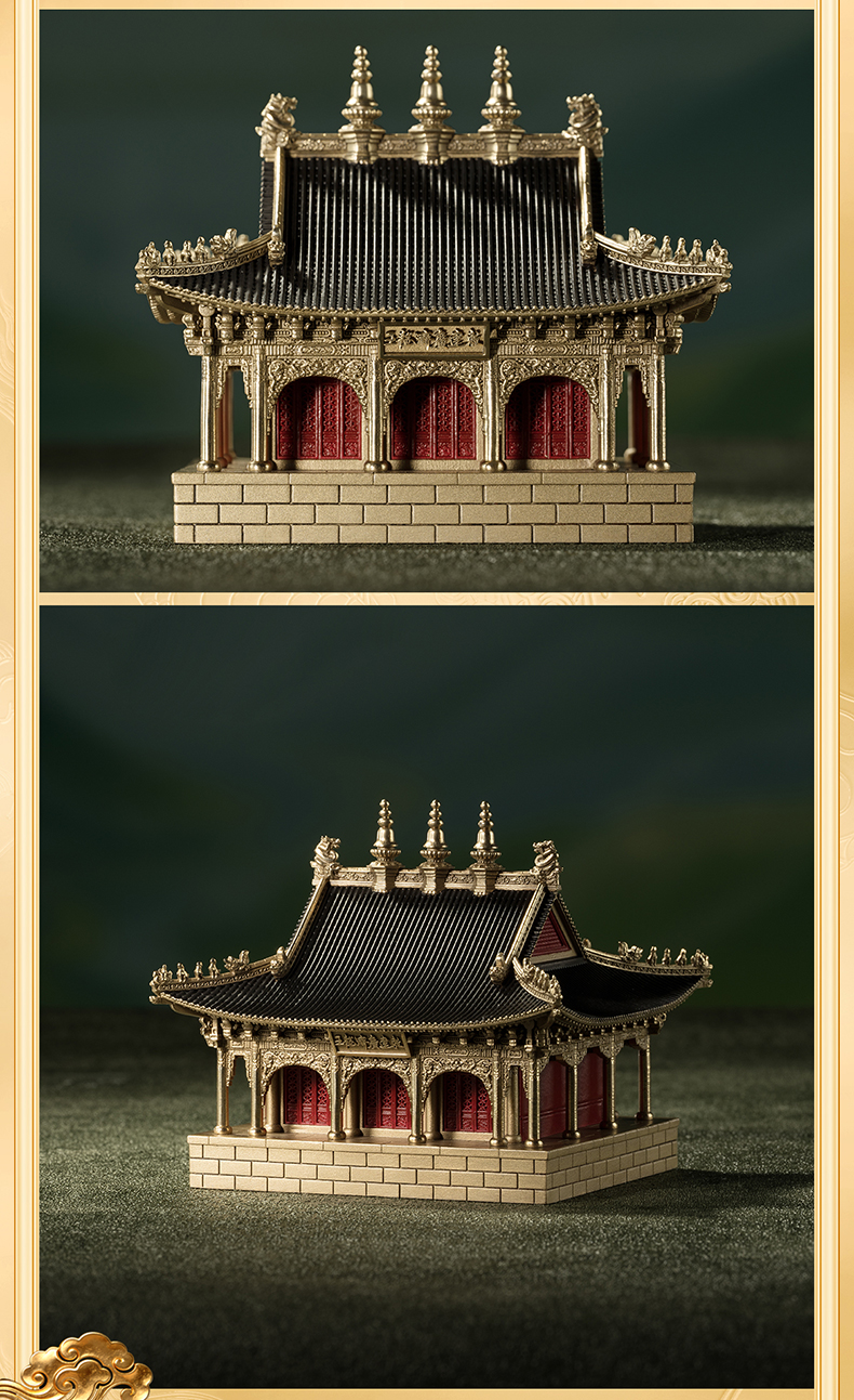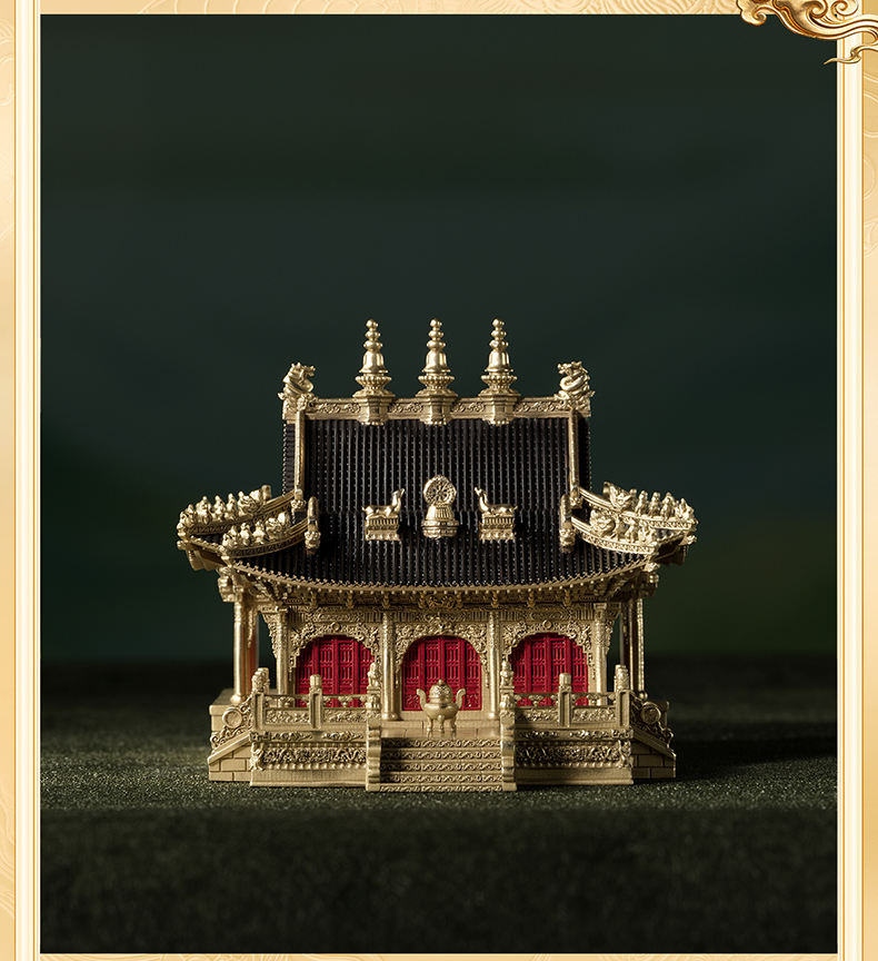 铜师傅 见微系列《五爷庙》 客厅桌面龙王庙寺庙铜工艺品家居摆件