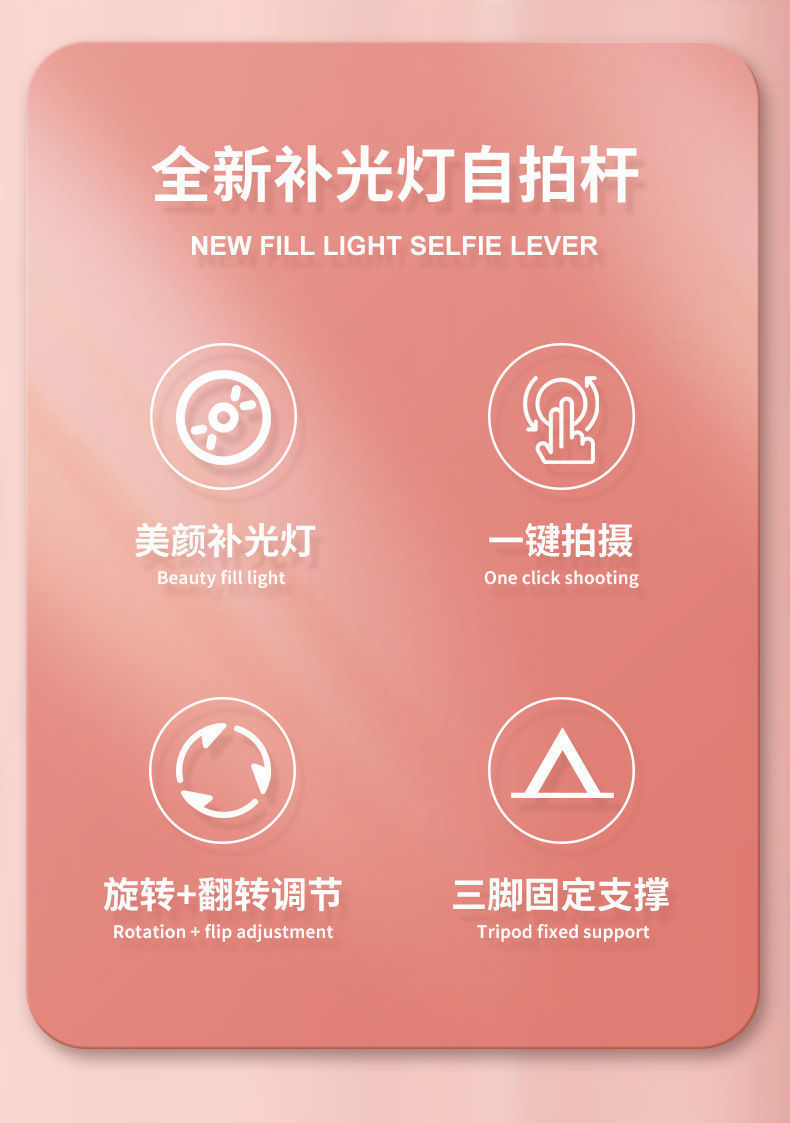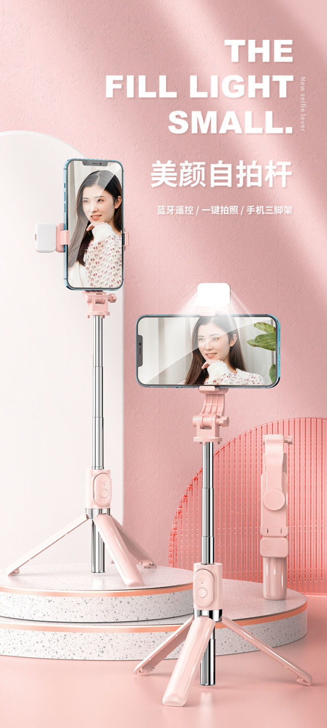 直播手机支架自拍杆全自动多功能新款补光灯手机支架拍视频旅游拍照【蓝牙 VIPsy】