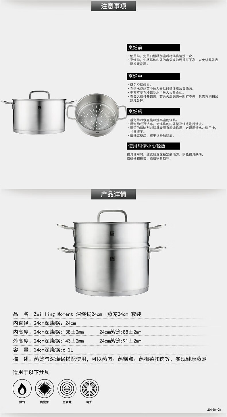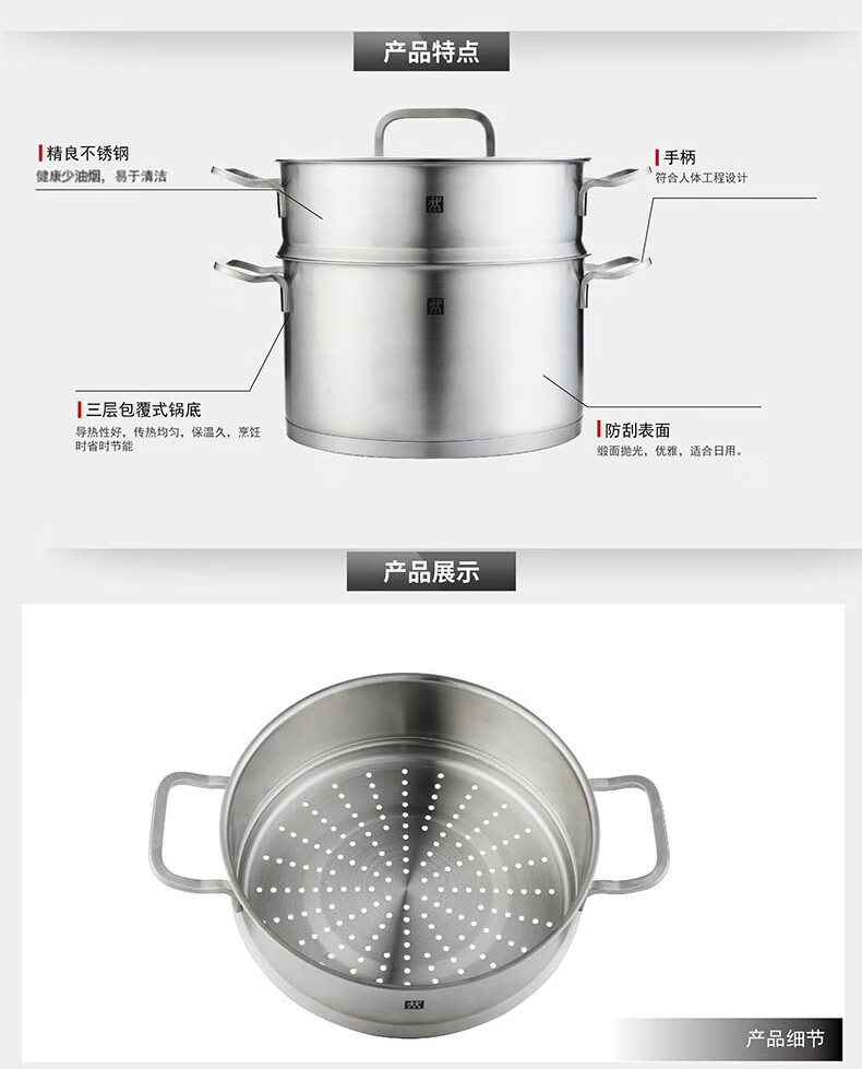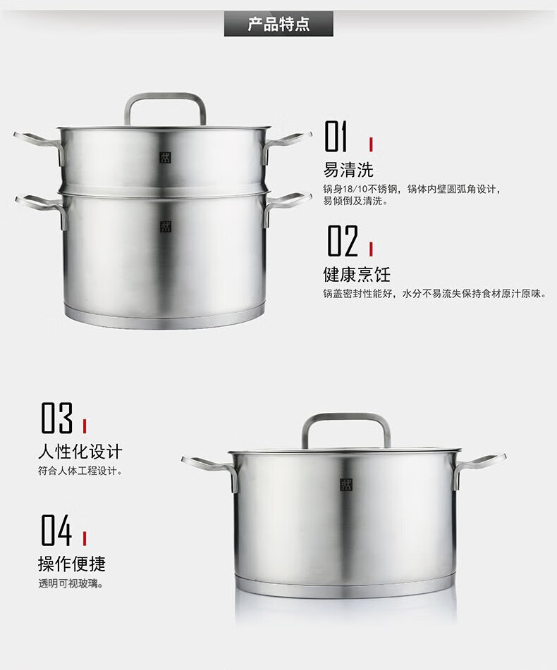 双立人ZW-C130 锅具套装(深烧锅24cm+蒸笼24cm套装)