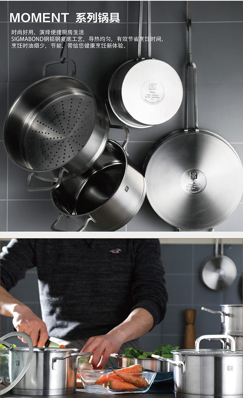 双立人ZW-C130 锅具套装 (深烧锅24cm+蒸笼24cm套装)+双立人ZW-C129锅具套装 (煎炒锅24cm+单柄炖锅16cm )【鲜知20.0】