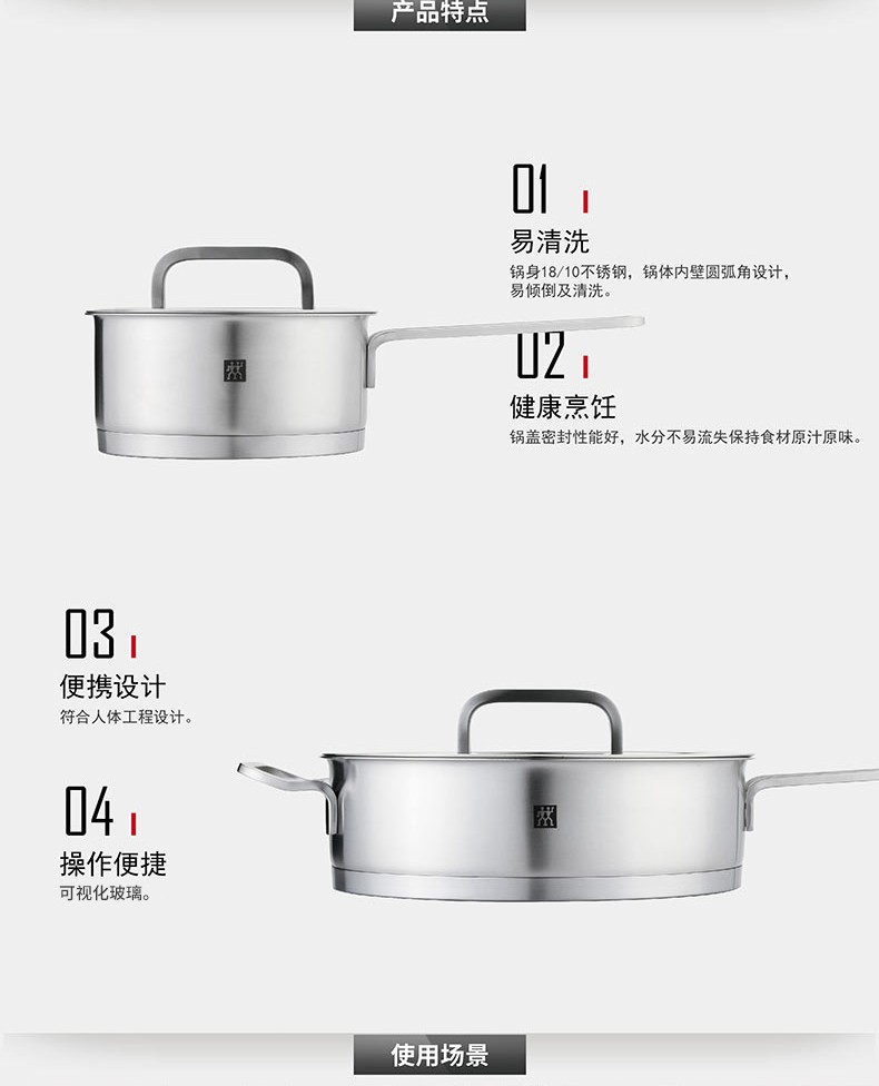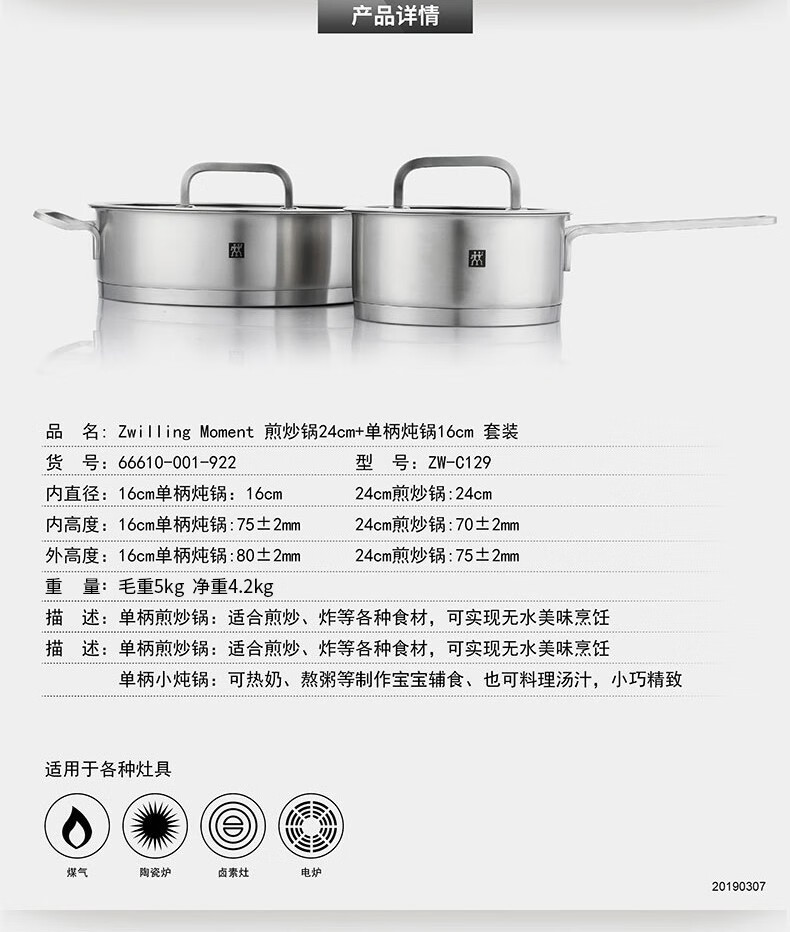 双立人ZW-C129锅具套装 (煎炒锅24cm+单柄炖锅16cm )
