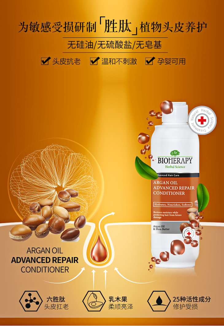 拜洛比阿甘油胜肽奢养修复护发素 易好