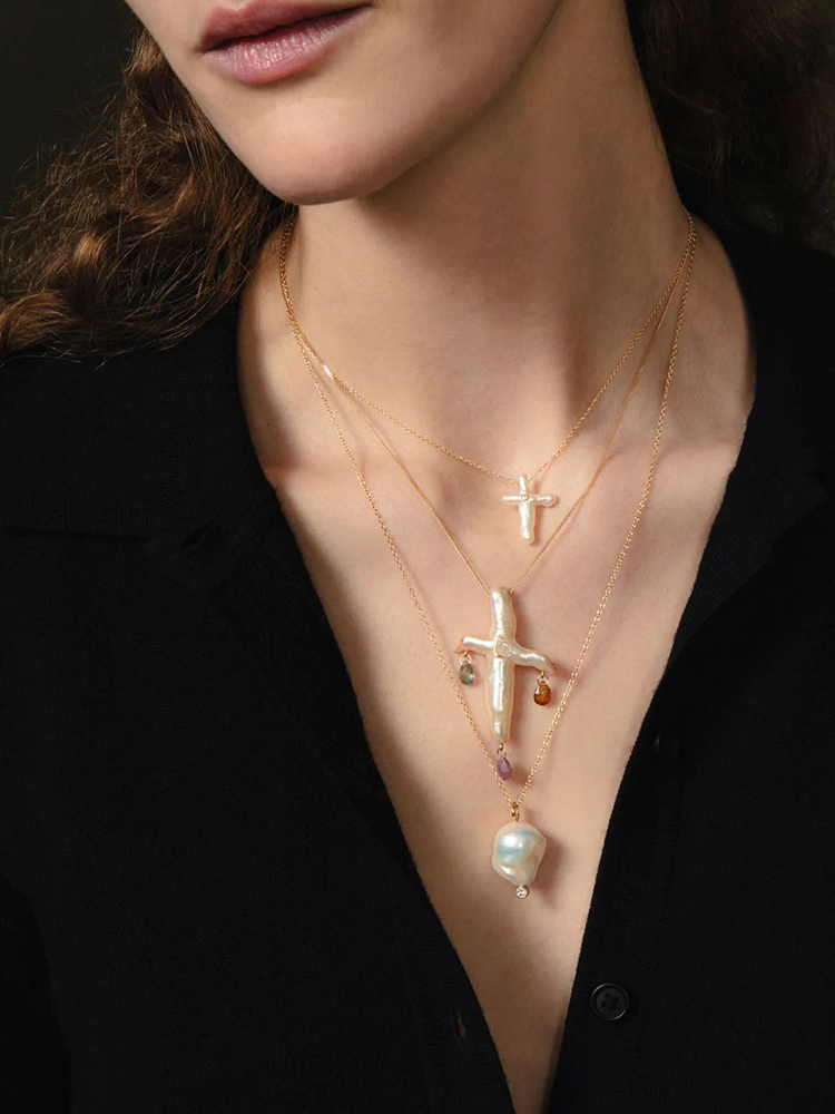 订购6周到|Chan Luu-14K-十字架 淡水珍珠 项链[美国设计师]