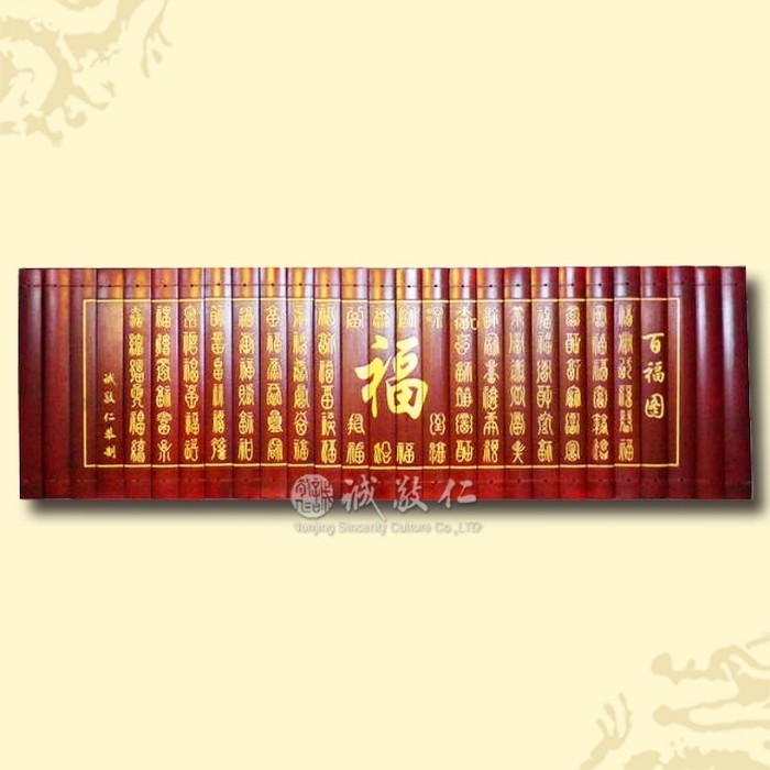 【基本信息】: 产品材质:竹 产品规格:26*82厘米 【产品文化】:百福图 浅解: 福文化是中国最古老的传统文化。什么是“福”,抽象的说:福是人们最渴望得到的,不懈努力追求的。 人们如此祈盼的“福”具体包括那些方面呢?《中华盛世平安福》对我们几千年的福文化包含的内容有这样一种概述: 第一层面“衣食是福” 传统福字俱进有几千年历史了,她是中国最古老的汉字之一,形体变化较多,按象形而论不管以酒祭天之说,还是求取“五福”之论,数千年前我们祖先最初的祈福意识主要目的还是为“衣食”。直到今天绝大多数人也还是把“衣食”作为福的主要目的。“衣食”代表“物质层面”,“物质”是“福”的“前提”,“民以食为天”,“以经济建设为中心”这些事理都在强调“衣食是福”; 第二层面“平安是福” “平安是福”源自《庄子》“平则福”距今两千多年。是什么让古人产生“平安是福”这种理念的呢?应该是自然灾害与战争。“平安”是一种“状态”,是人们对平和安定生存过程的渴望。没有平安就没有一切,平安是“福”的“基础保障”我们说的“长命百岁”,“安度晚年”,“健康是福”,“安全第一”,“创建平安城市”都是祈福“平安”的写照; 第三层面“和谐是福” 人拥有“衣食”物质和“平安”状态并不一定会感觉到幸福,人类对福的最高追求是精神追求,也就是“和谐是福”。“和”文化,中国传统文化之大成者,在中华民族发展史上起到了重要作用。和谐是福,始之于创建和谐社会。和涵盖了:谦和、和善、和顺、和睦、和美、和谐等方面内容,从任何一个词语中都可以找到幸福感追求点。“和谐”代表“精神层面”,“和谐是福”是人们对福的一种精神感觉,当然人的思维不同,追求不同,对福的感觉也不同。但以“和谐”为代表的“和文化”所涵盖的精神层面上的祈福理念却能符合绝大部分人的祈福观点。 【悬挂方法】: 1、竹简两端的竹片背面有绳子,可直接挂在墙上的钉子或者挂钩上; 2、还可以如书法作品一样加画框装裱,更显庄严; 3、如不挂墙上,可直接展开,靠在橱窗或墙壁上。 |