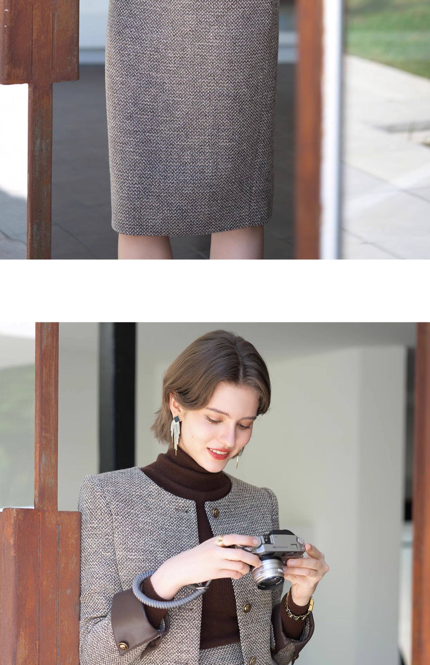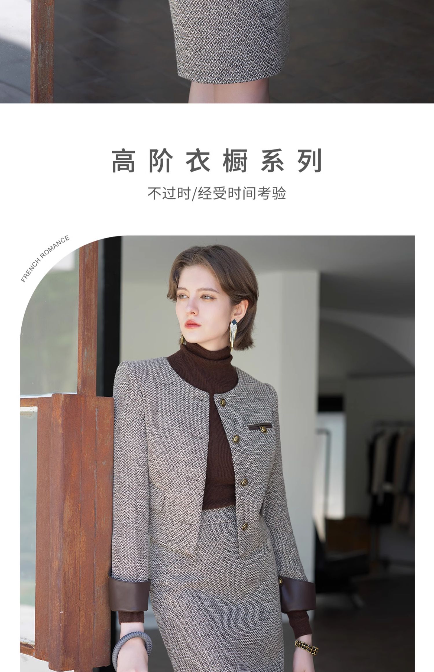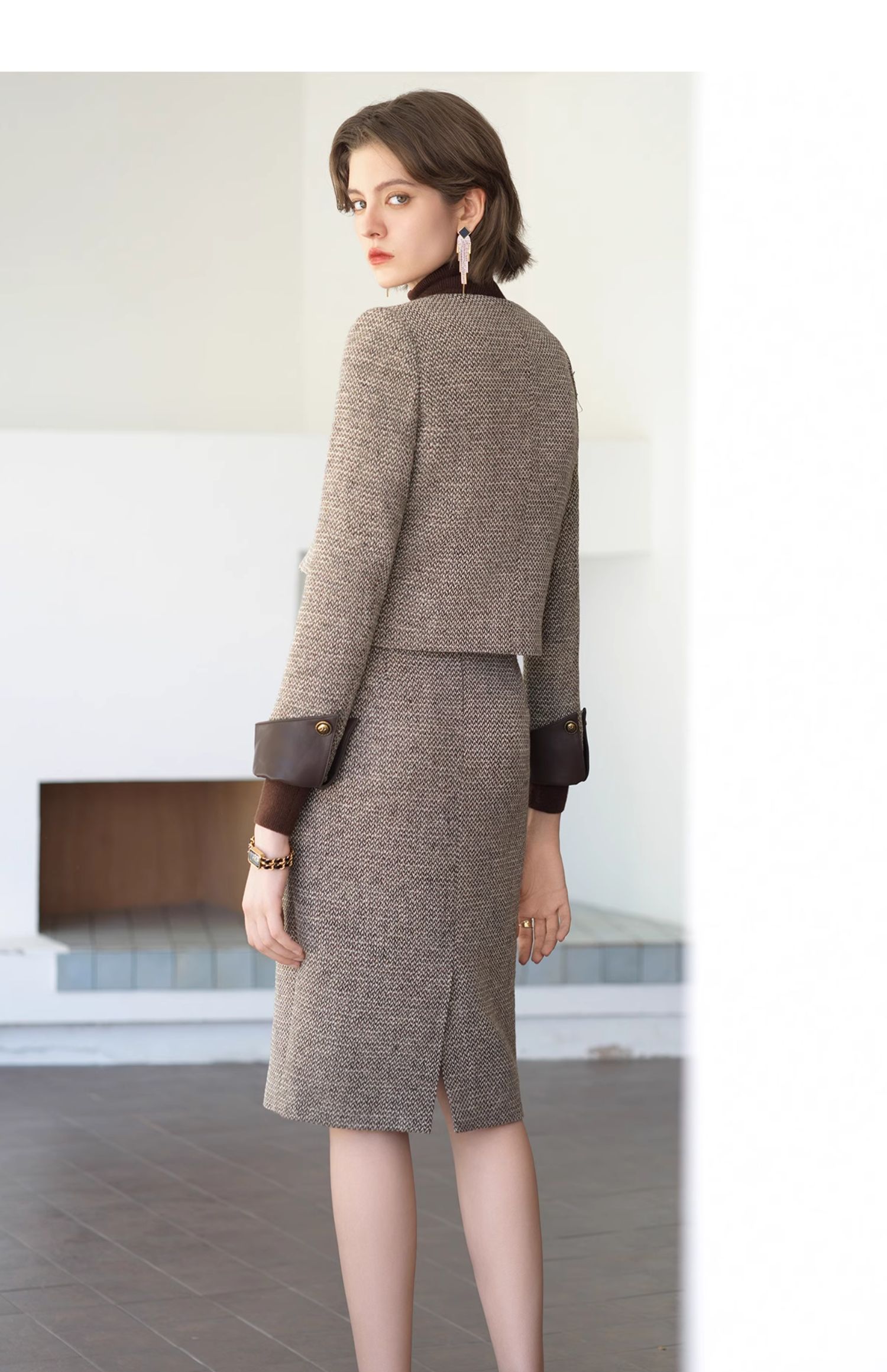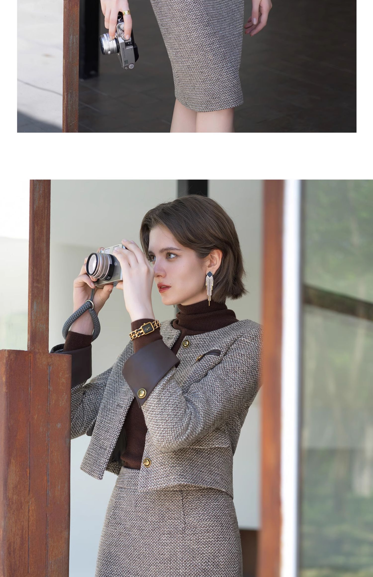 AD初秋韩系穿搭套装2024新款粗花呢接拼皮质短外套女小香风两件套