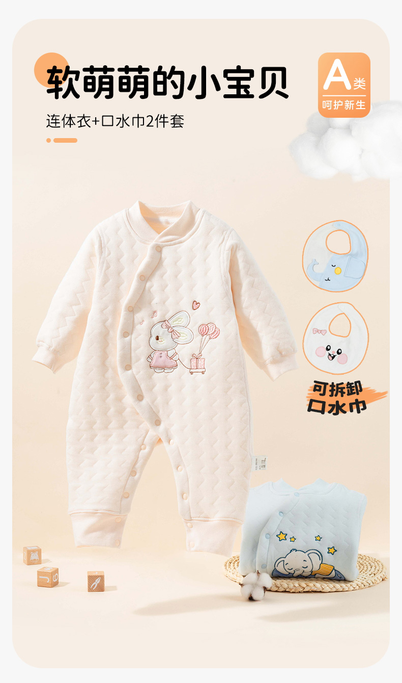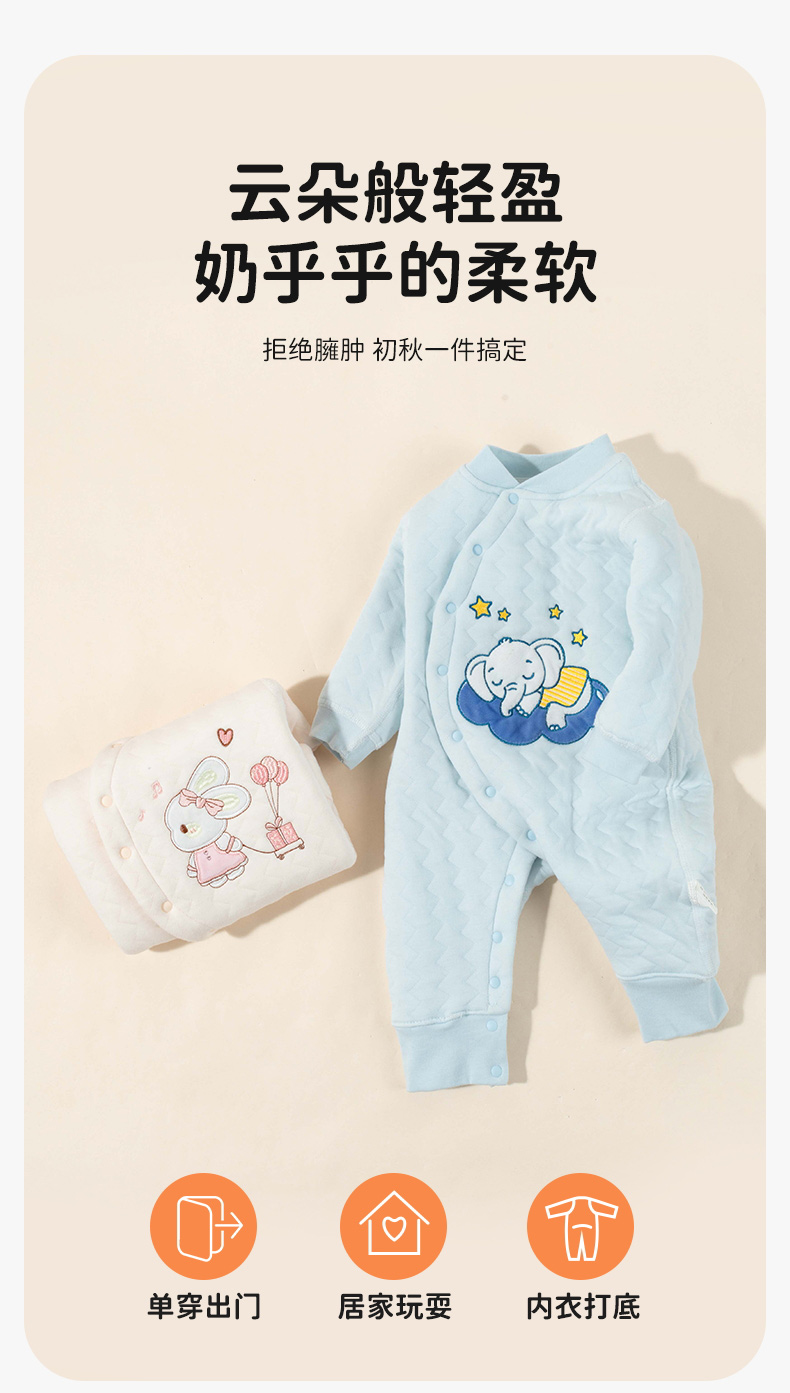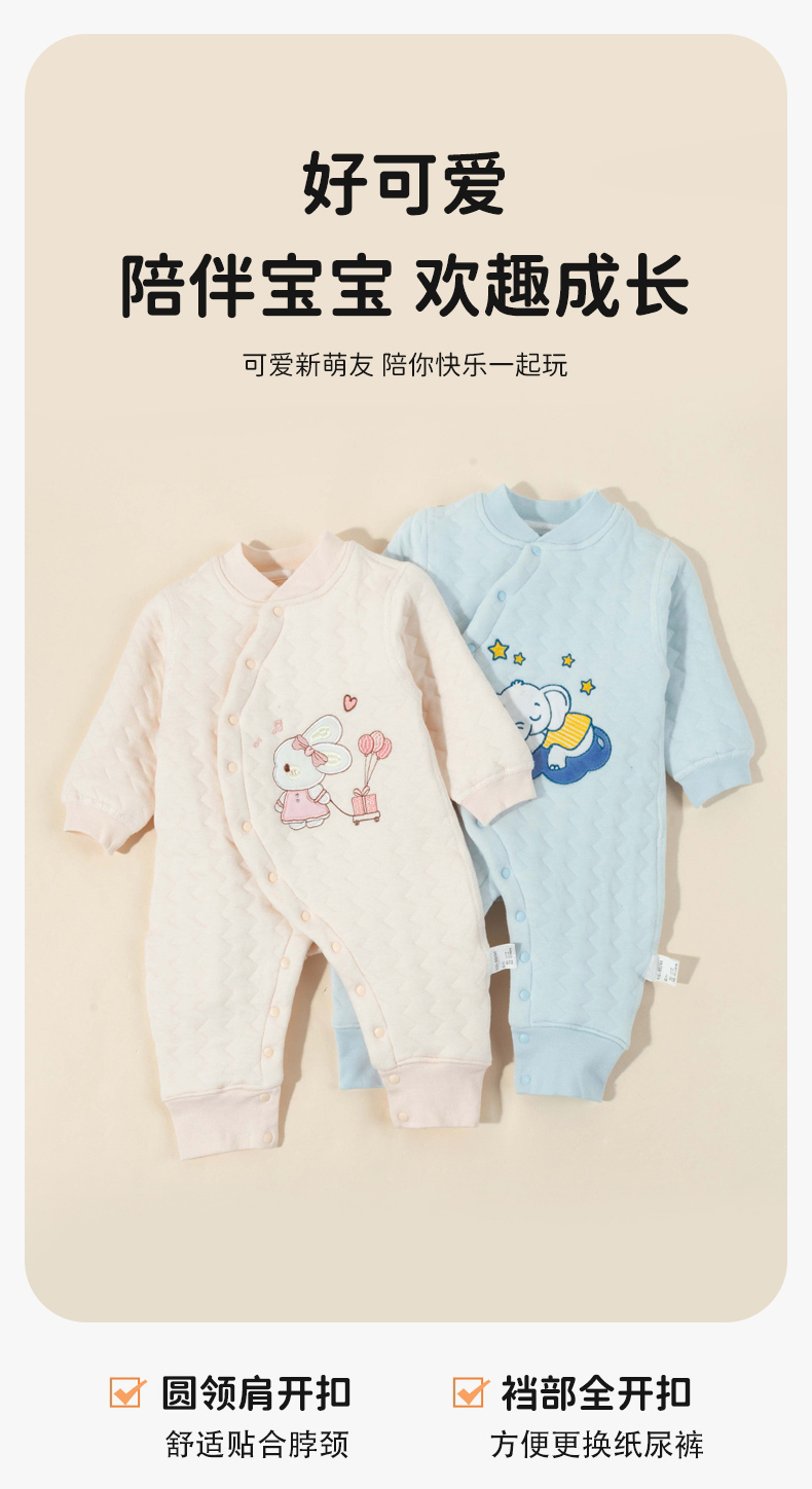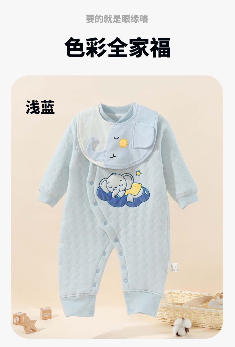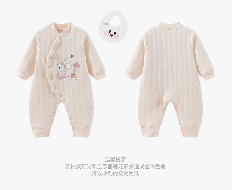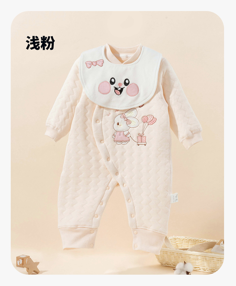 贝贝怡婴幼儿连体衣春秋保暖冬季夹棉新生儿男女宝哈衣爬服ZB4DL054