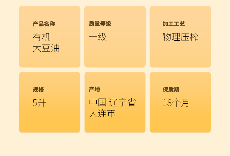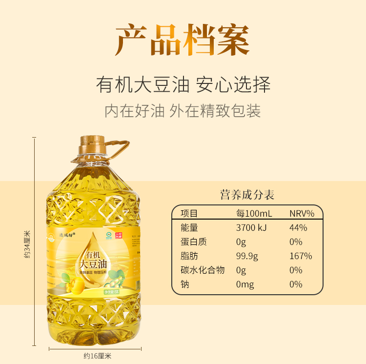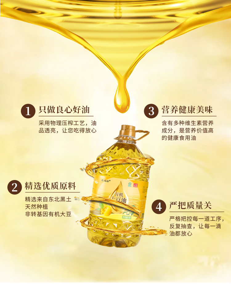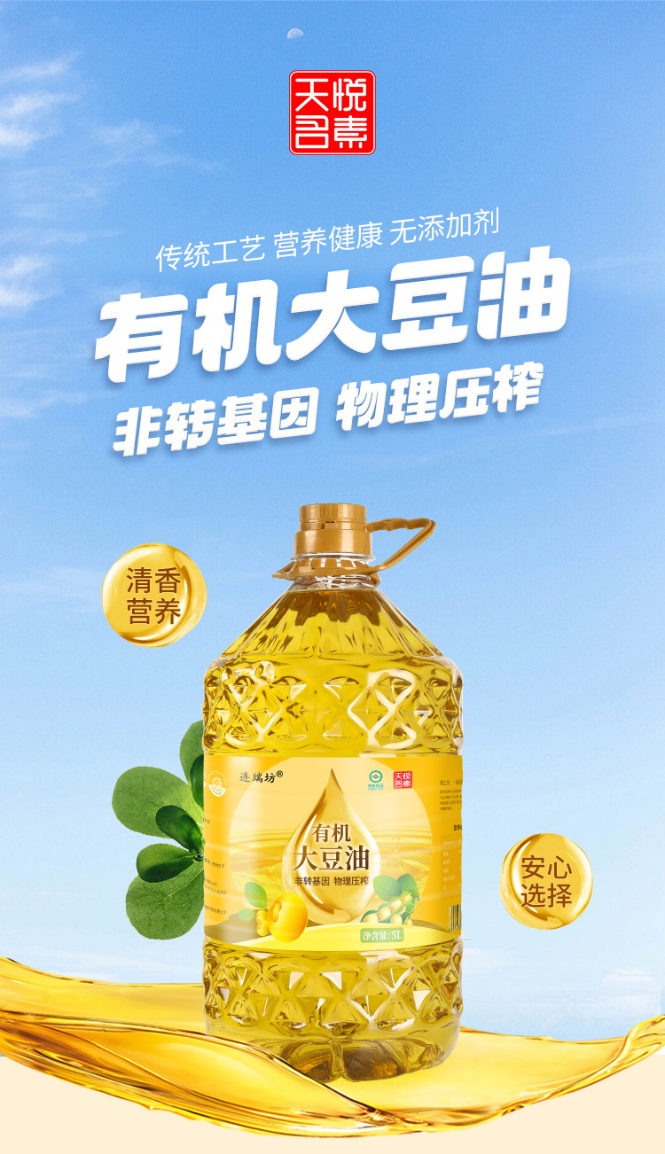 【给妈妈用好油,更健康】有机大豆油 物理压榨 一级大豆油 精选优质原料 20多年做油经验 品质保障 一桶5L