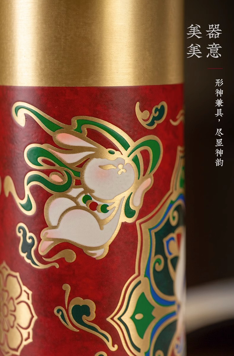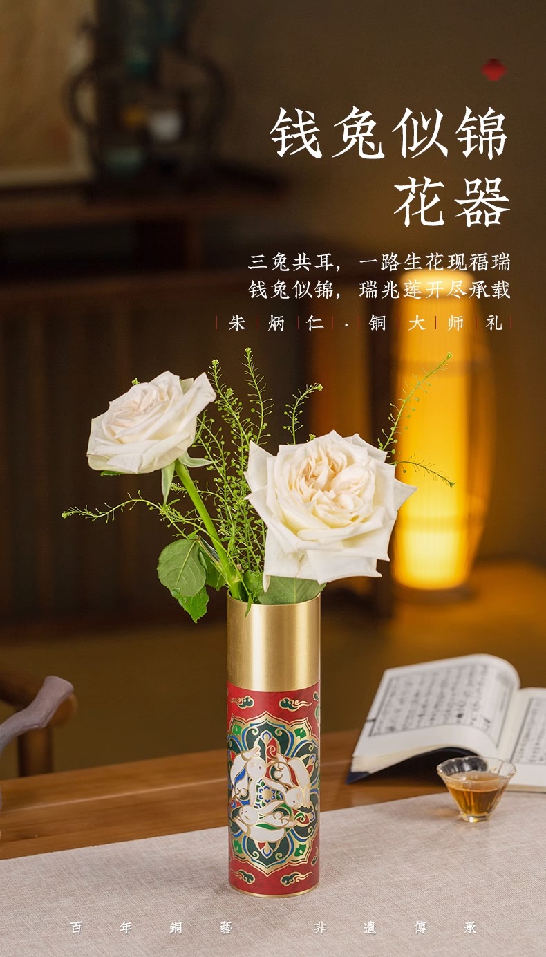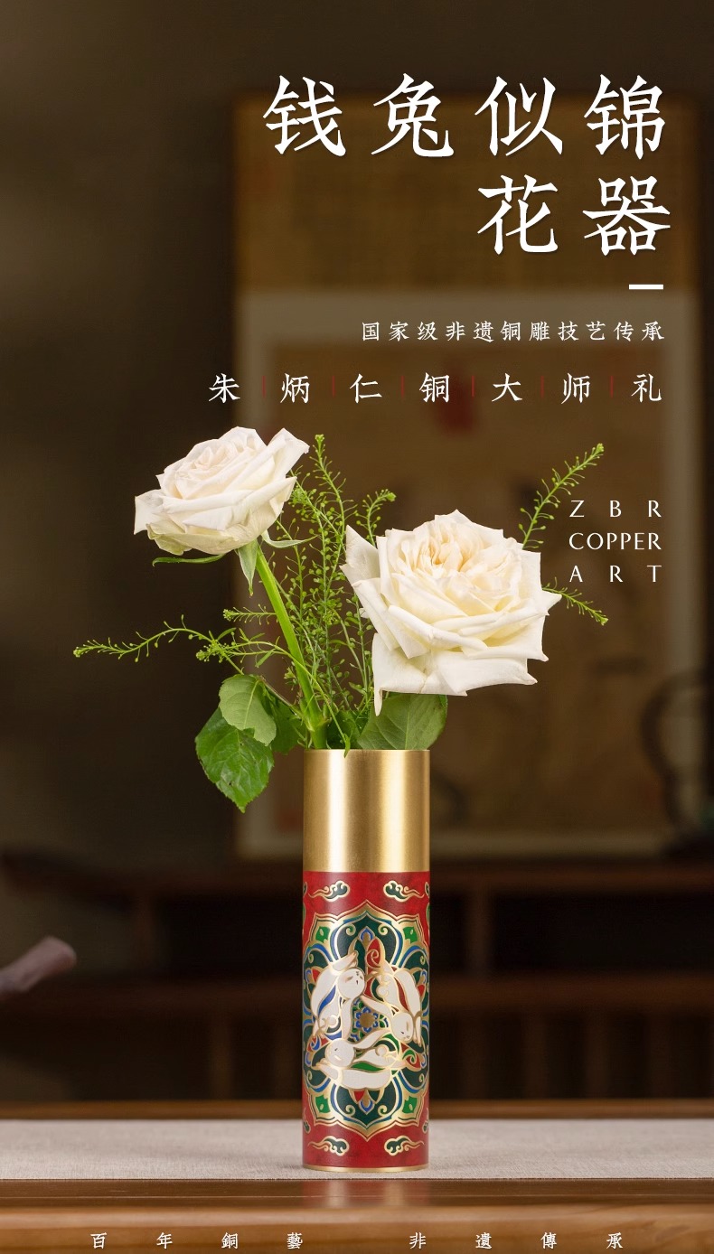 朱炳仁铜钱兔似锦花瓶花器插花花瓶家居装饰摆件创意花器
