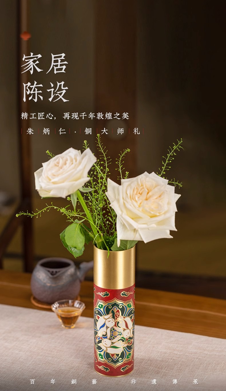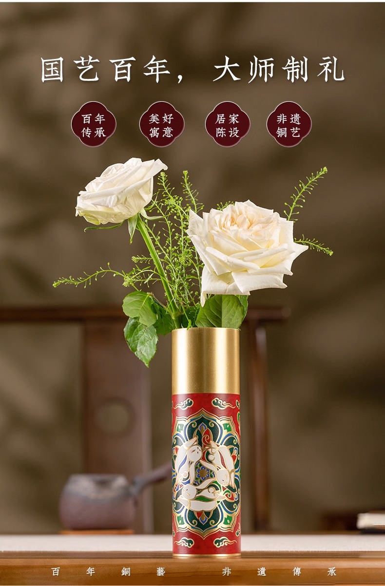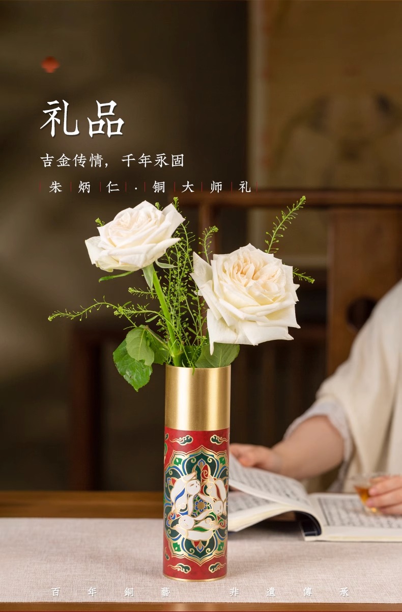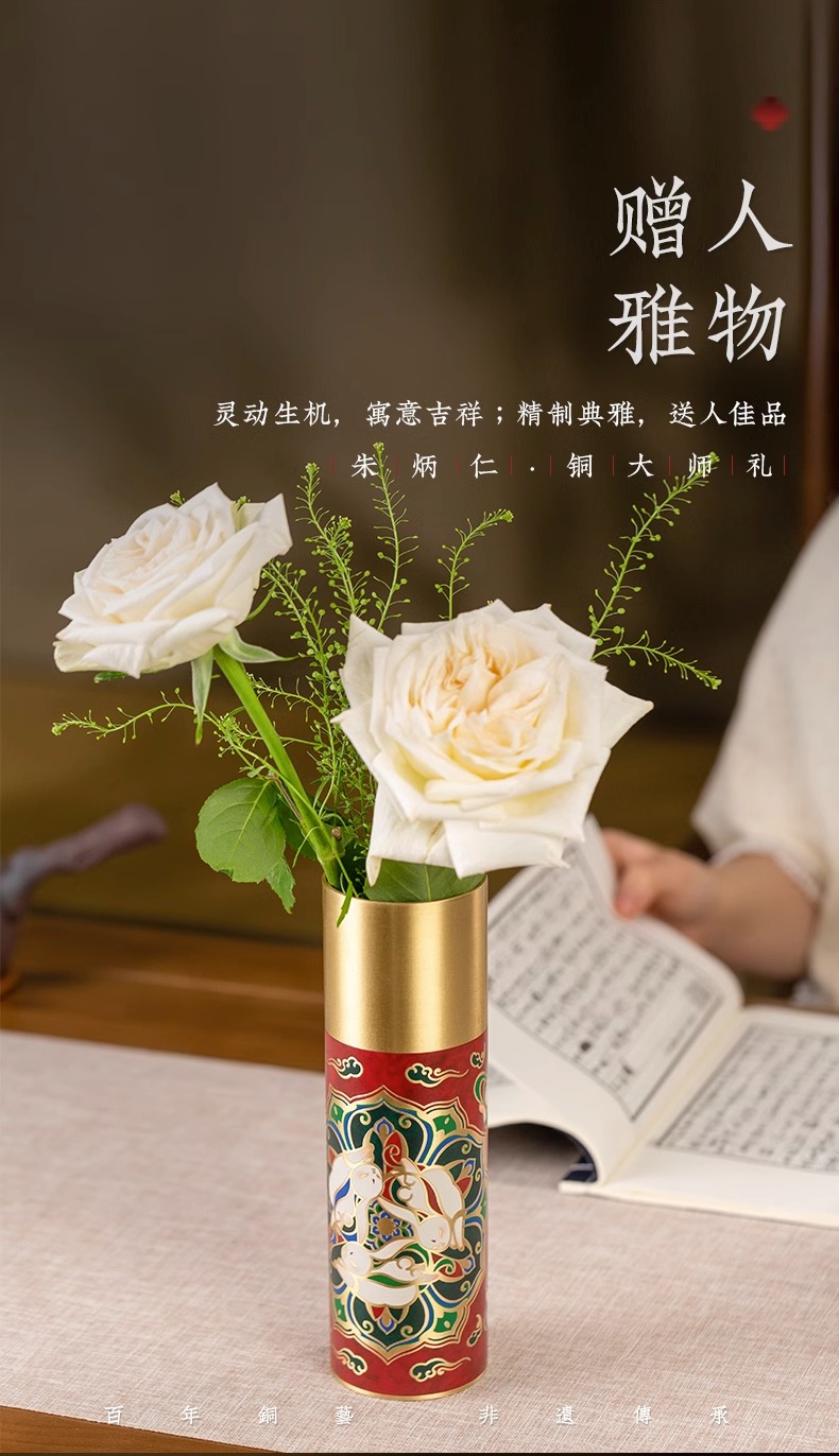 朱炳仁铜钱兔似锦花瓶花器插花花瓶家居装饰摆件创意花器