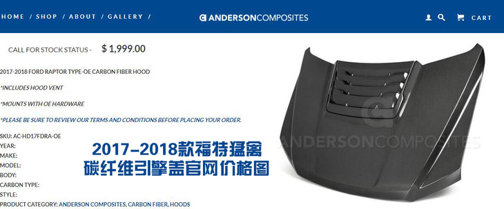 真碳纤维引擎盖&机盖风口 适用2017-2018福特猛禽(美国AC原厂正品),邮费默认到付