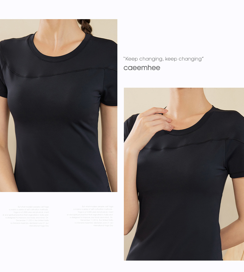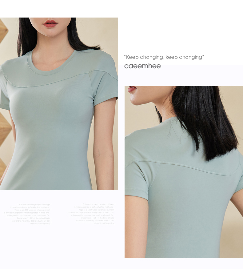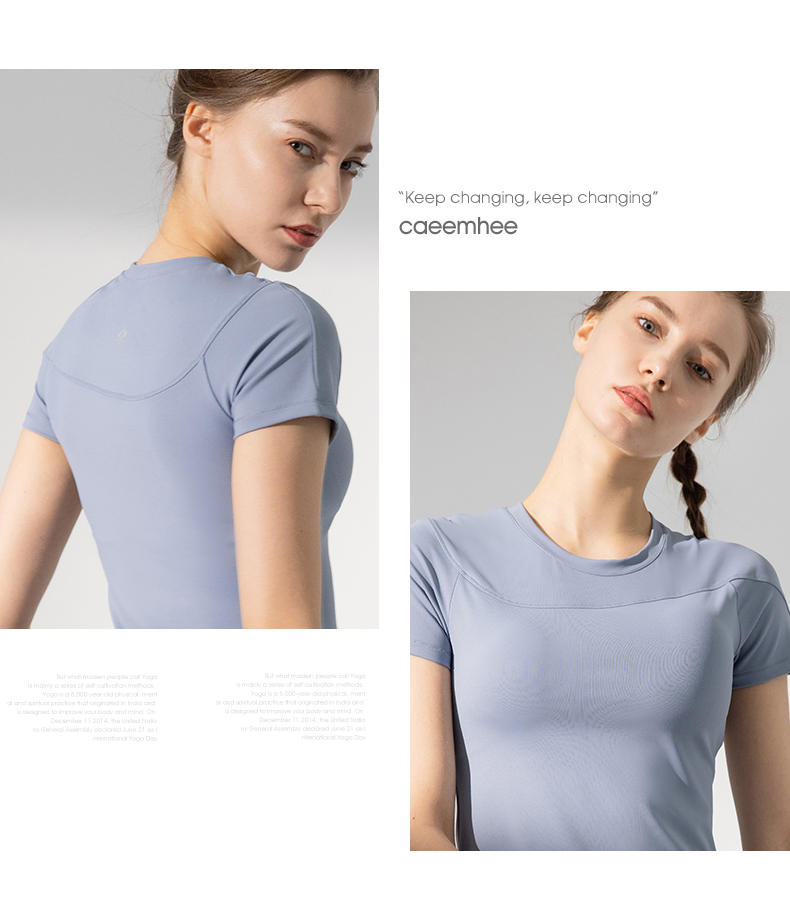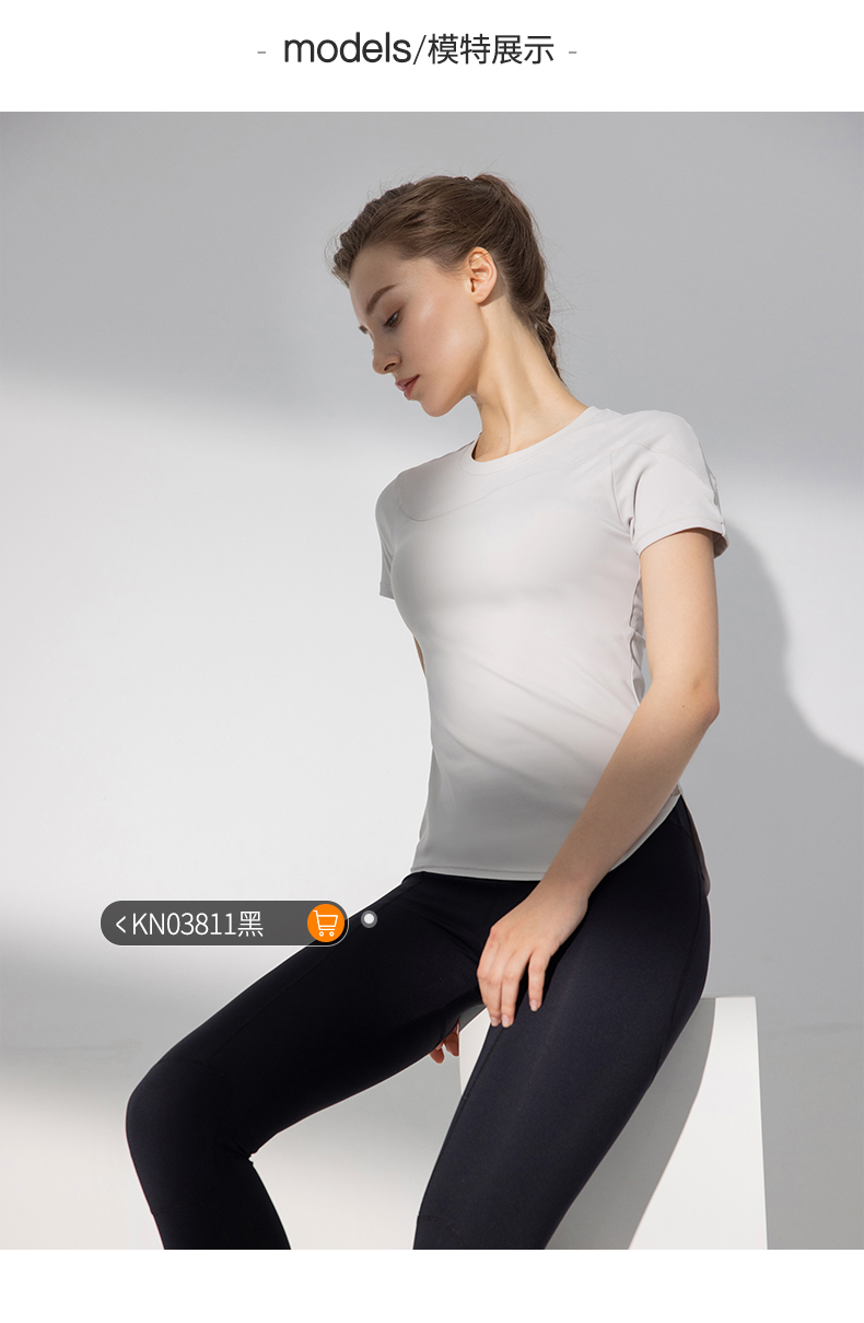 卡益裸感短袖KN03709可插胸垫瑜伽服健身服