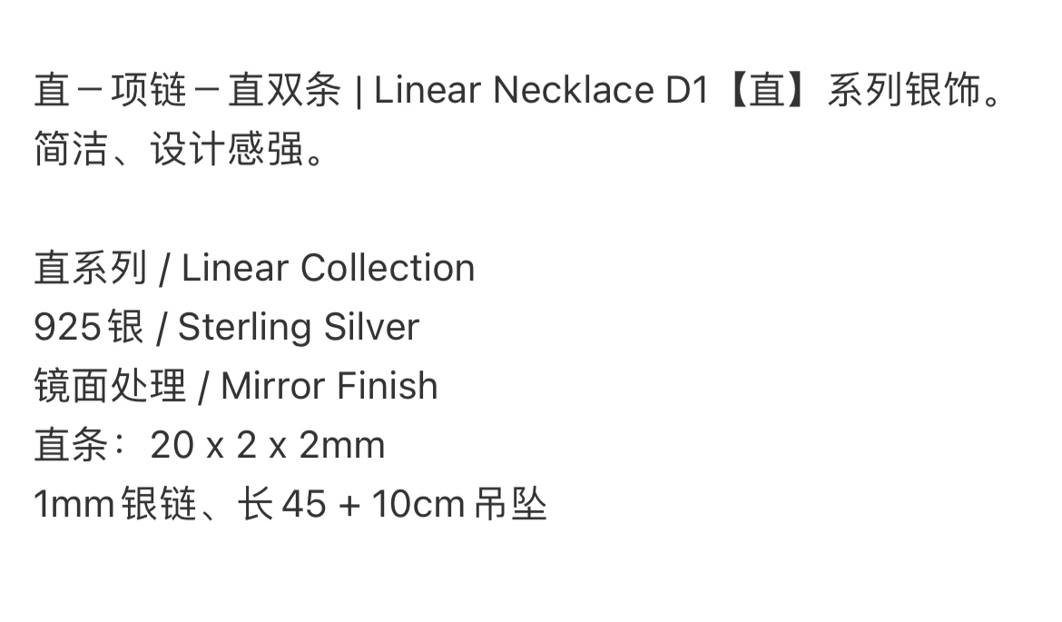 AWU|L6 - Linear D1 necklace 【 直 】直双条 Y型项链
