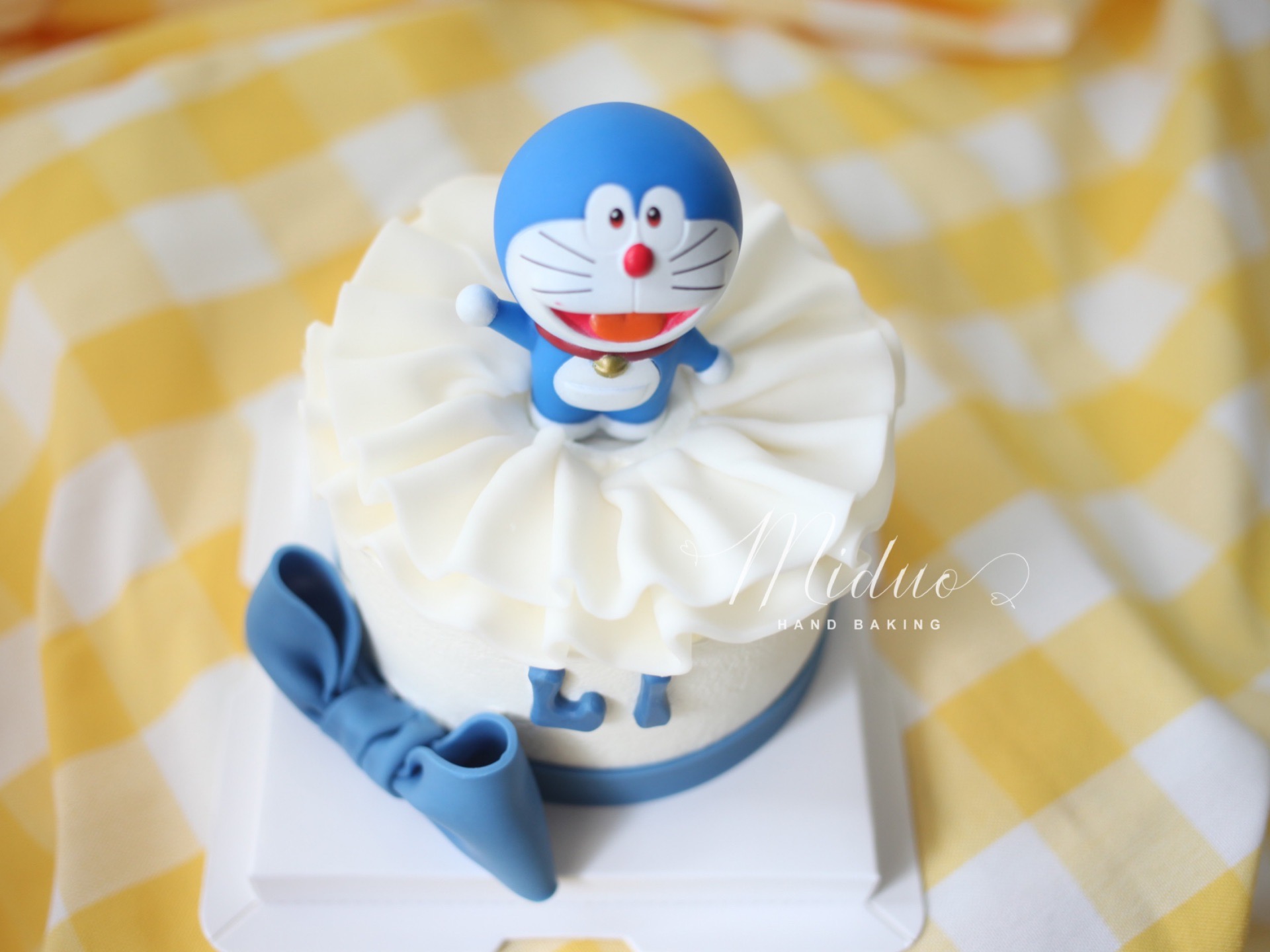 卡通主题款 蓝胖子 哆啦A梦 翻糖蝴蝶结 裙边蛋糕