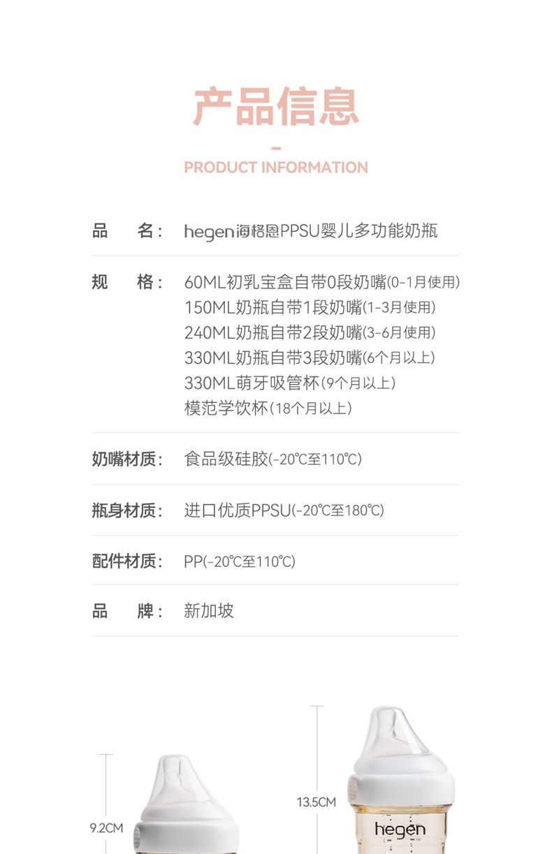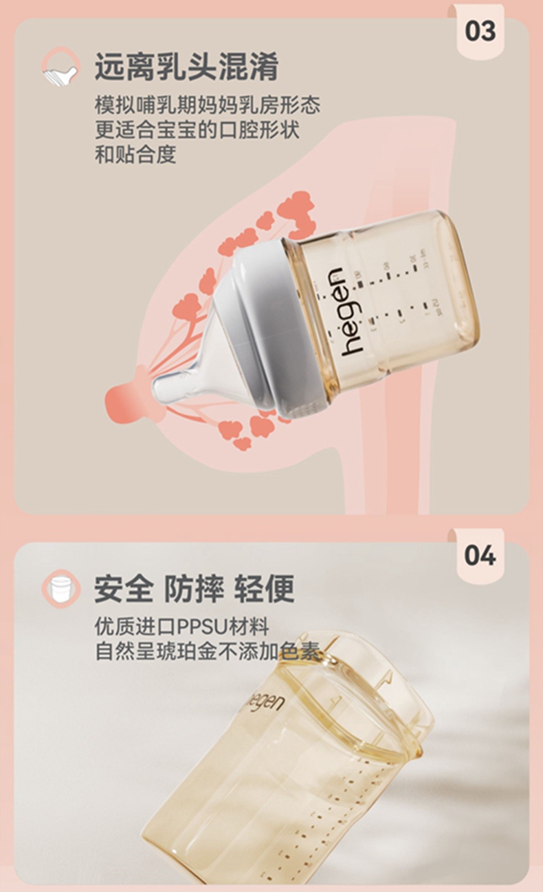 hegen海格恩240mL婴儿多功能PPSU奶瓶(大麦金)