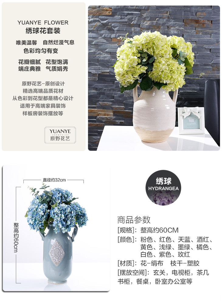 原野 花瓶花艺仿真花现代简约装饰花假花花卉卧室摆件客厅书房会所酒店艺术插花绣球花套装