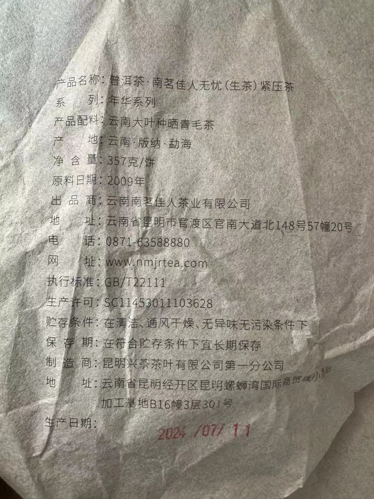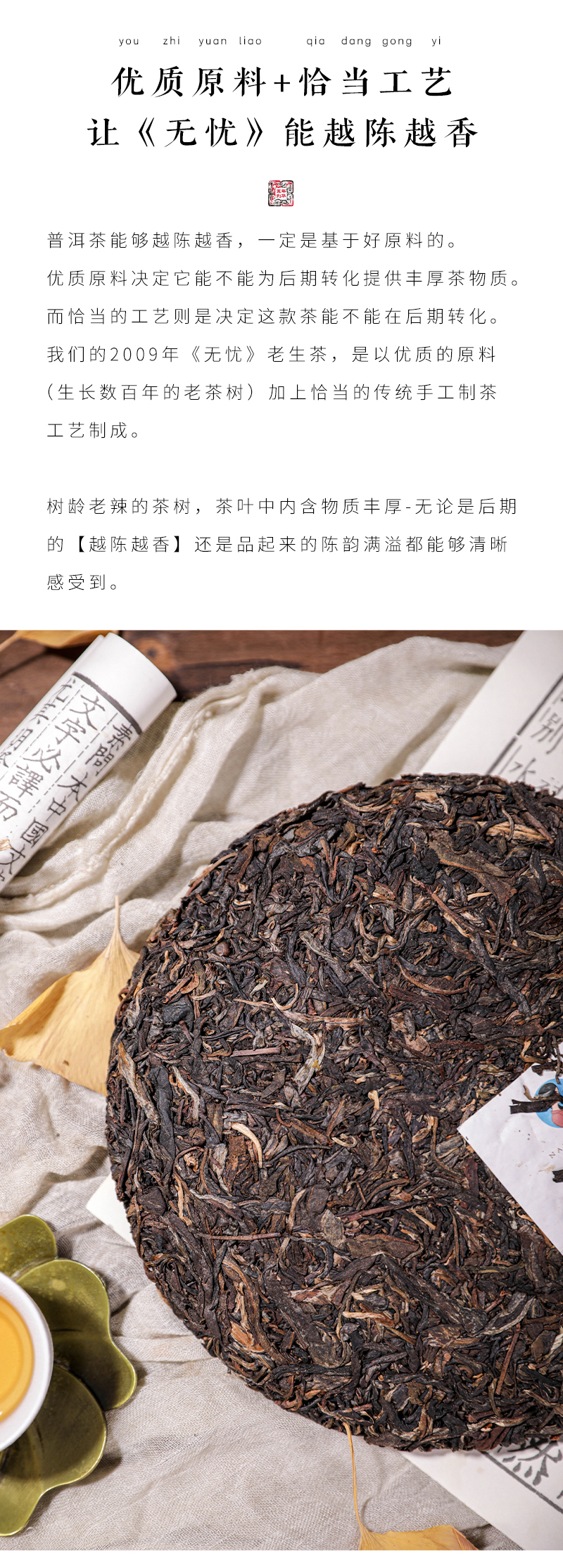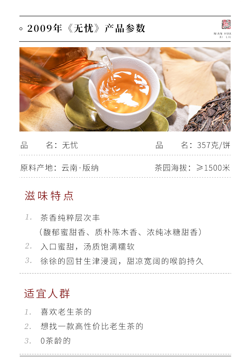 【买7送1】2009年《无忧》老生茶 357克*1饼