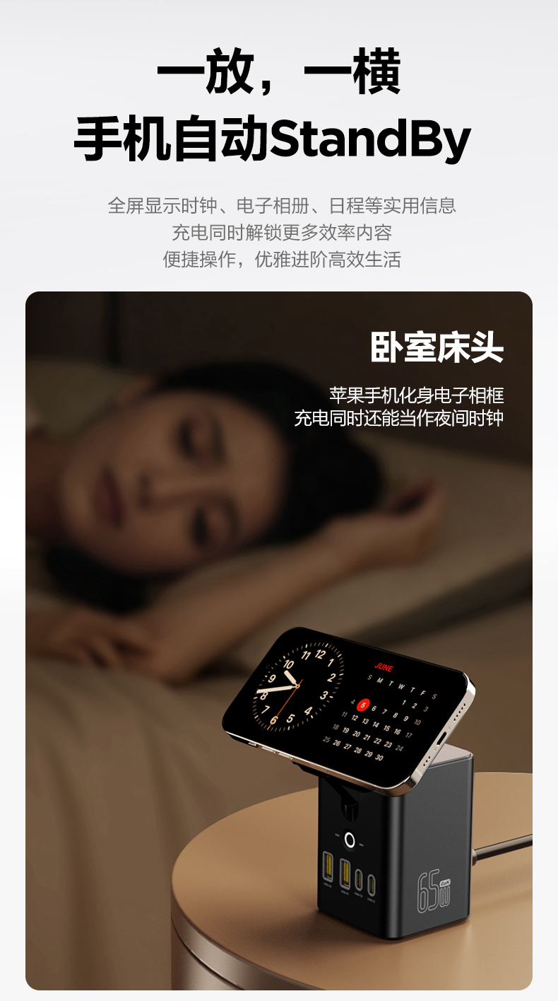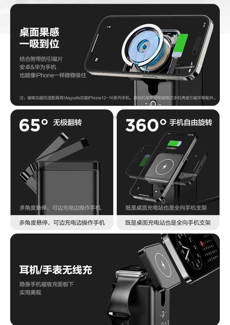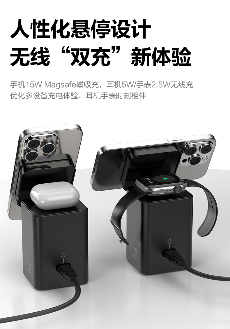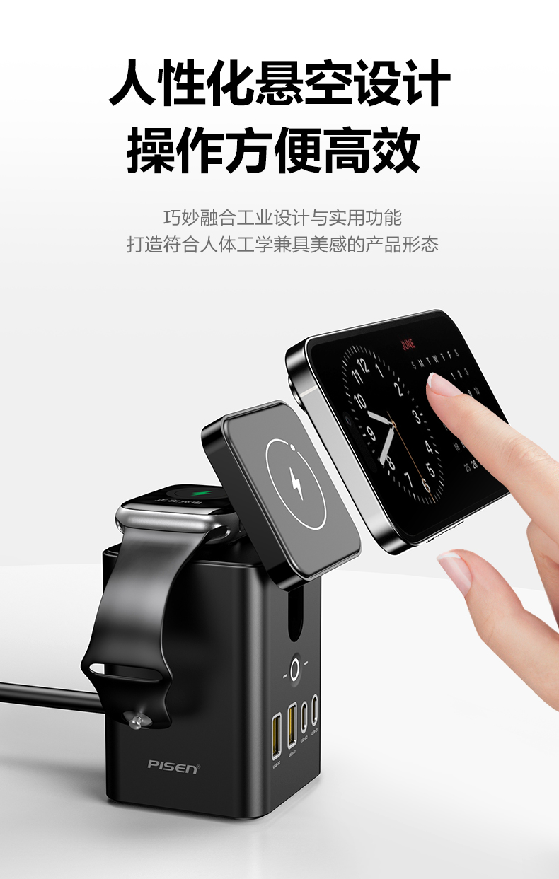 品胜65W集合充电站套装 氮化镓充电器 黑武士磁吸无线充插座套装支持手表/耳机充电 65W笔记本快充 华为超级快充