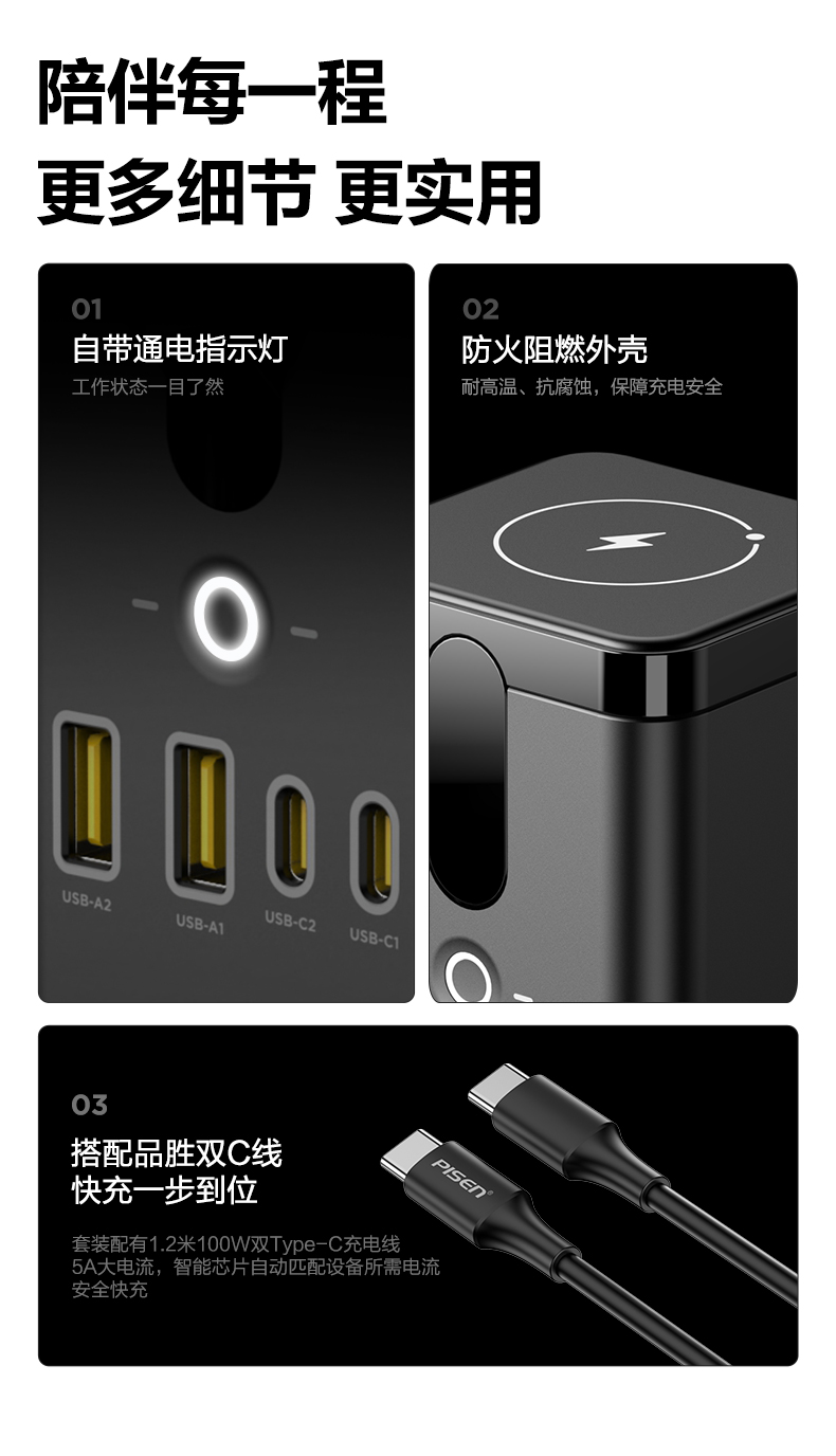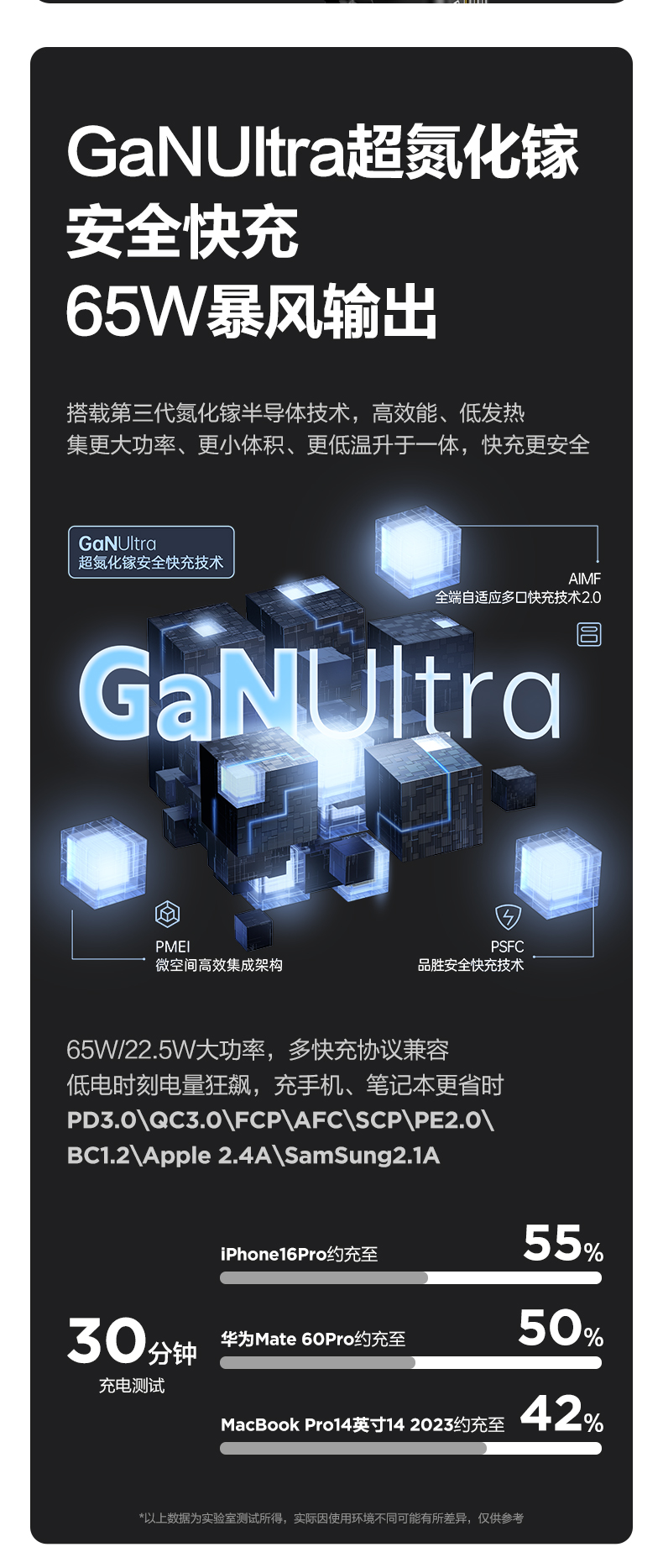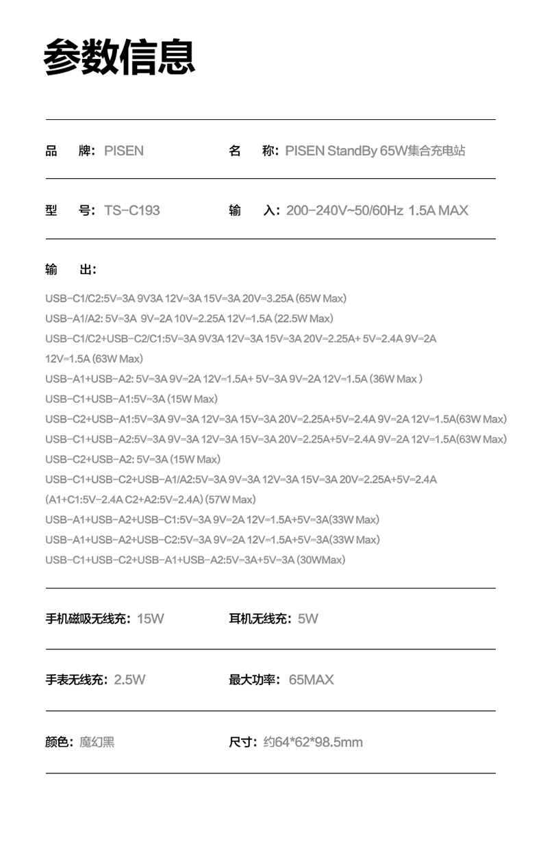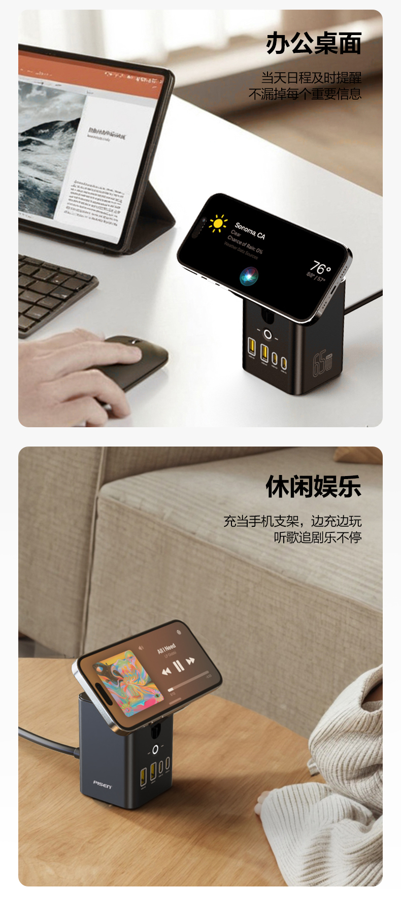 品胜65W集合充电站套装 氮化镓充电器 黑武士磁吸无线充插座套装支持手表/耳机充电 65W笔记本快充 华为超级快充