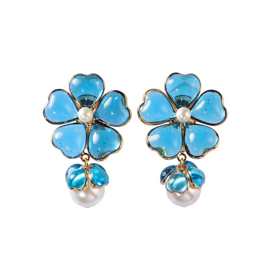 订购6个月到|Gripoix Paris-No.49 Flower-蓝色琉璃 珍珠 耳环[法国设计师]