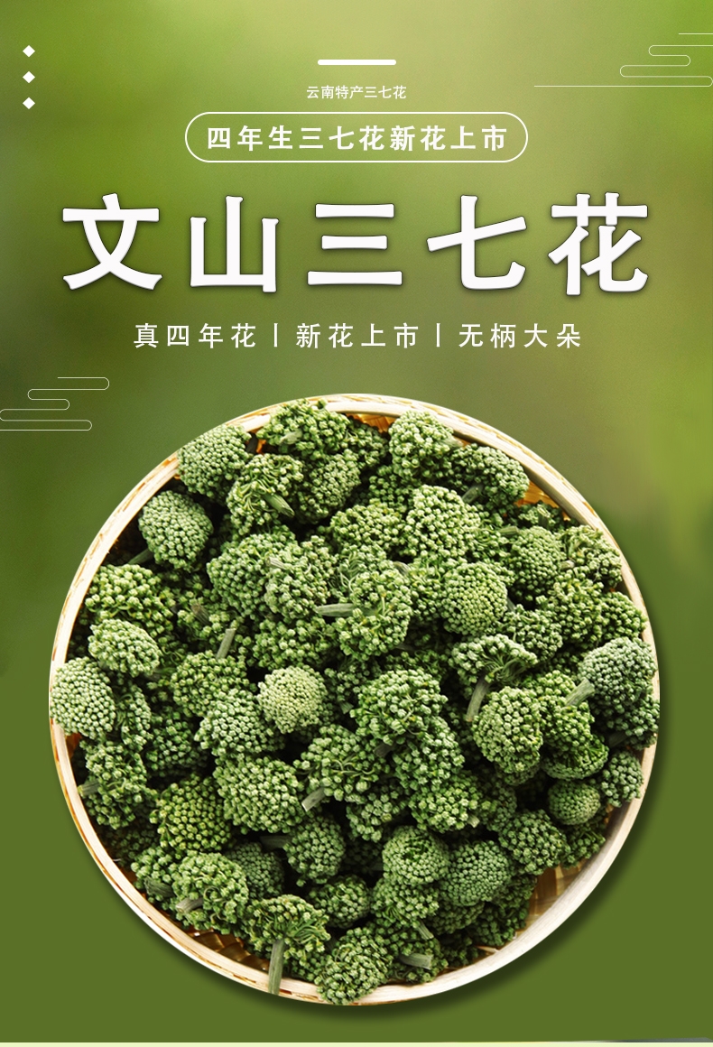吉顺号云南文山三七花 四年生三七花茶 四年花无柄大朵100g/罐