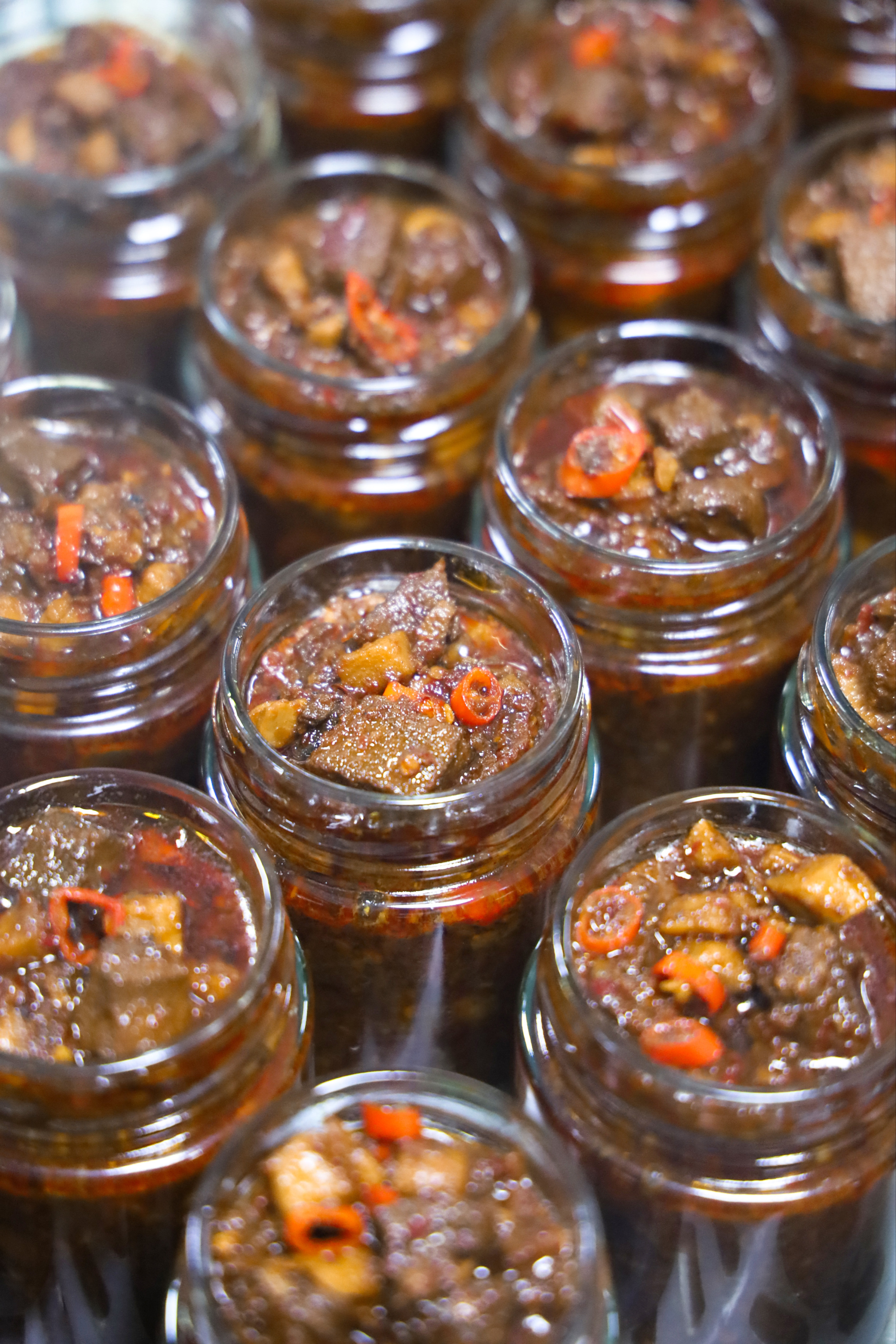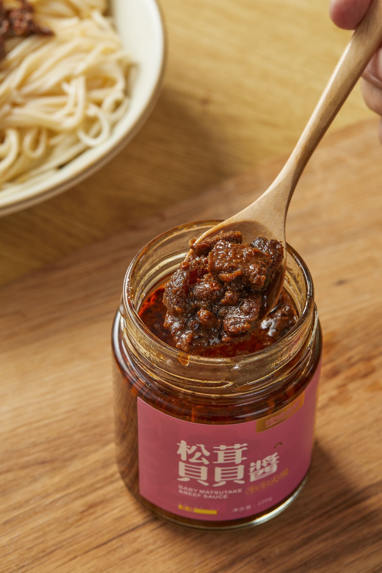 采用云南新鲜小米椒、新鲜小牛腱秘制老卤入味,手工切块继而小锅熬制,鲜牛肉添加50%,不添加任何防腐剂,香精香料。既有云南小米椒的鲜甜,又有大颗粒牛肉的扎实与满足,酱香味浓。可直接拌面、炒饭、夹馒头或蘸饺子,是快节奏生活中的下饭神器。