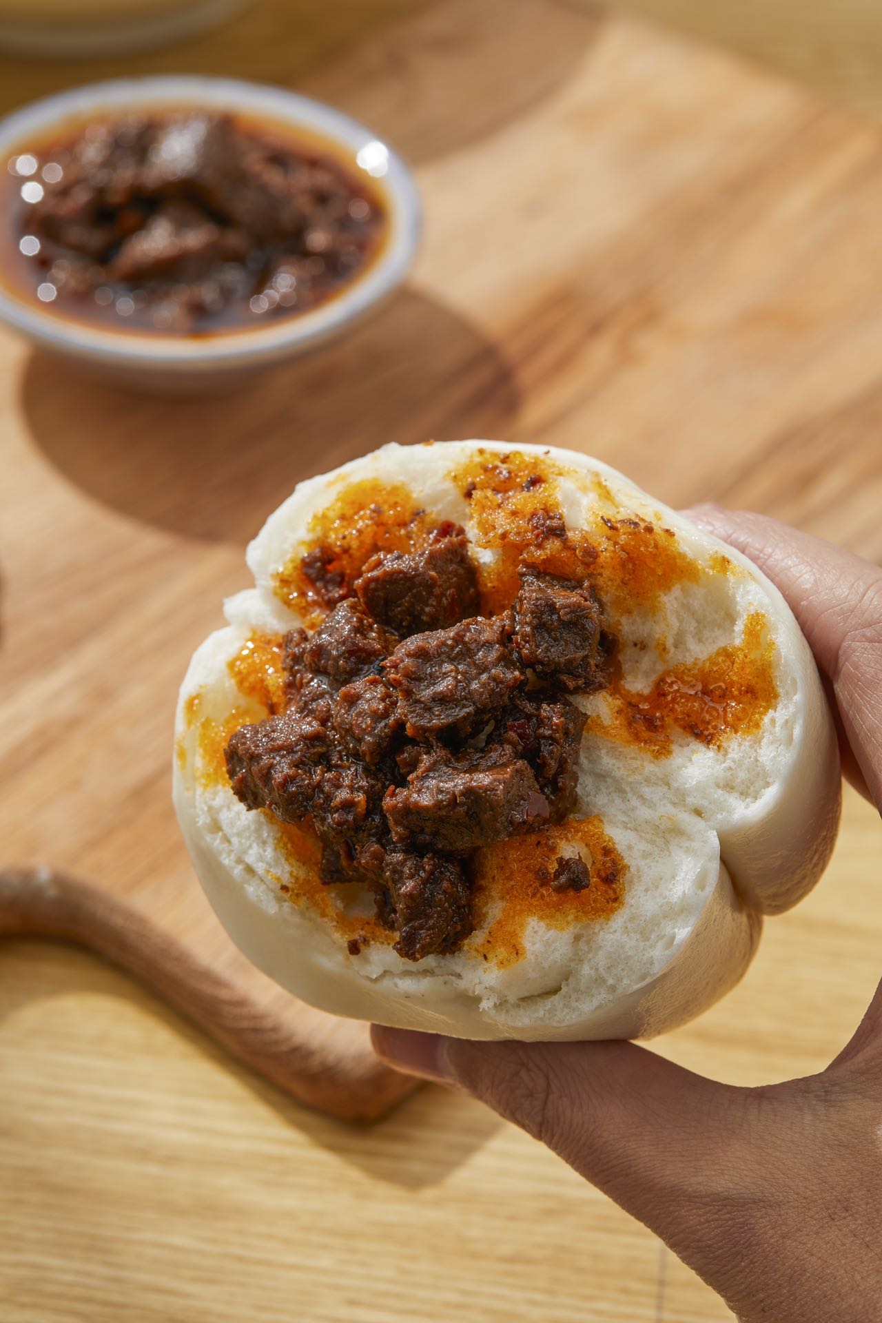 蘸上香辣的牛肉酱,