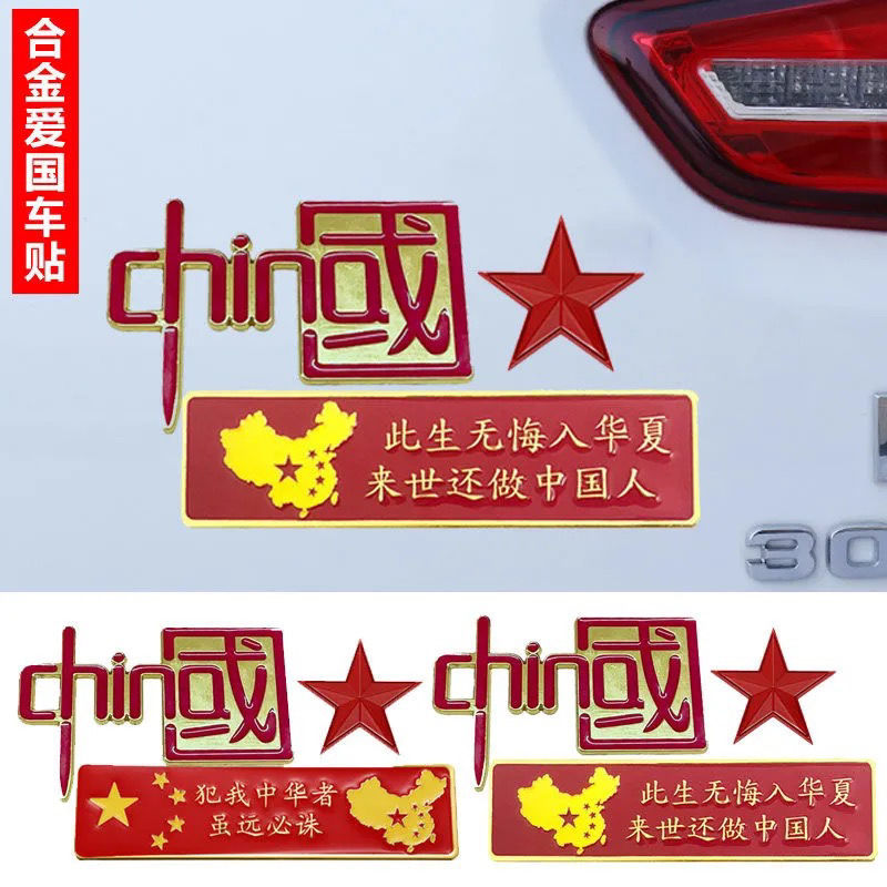 抖音同款China中国五星金属侧标装饰贴忠于祖国忠于人民爱国车贴