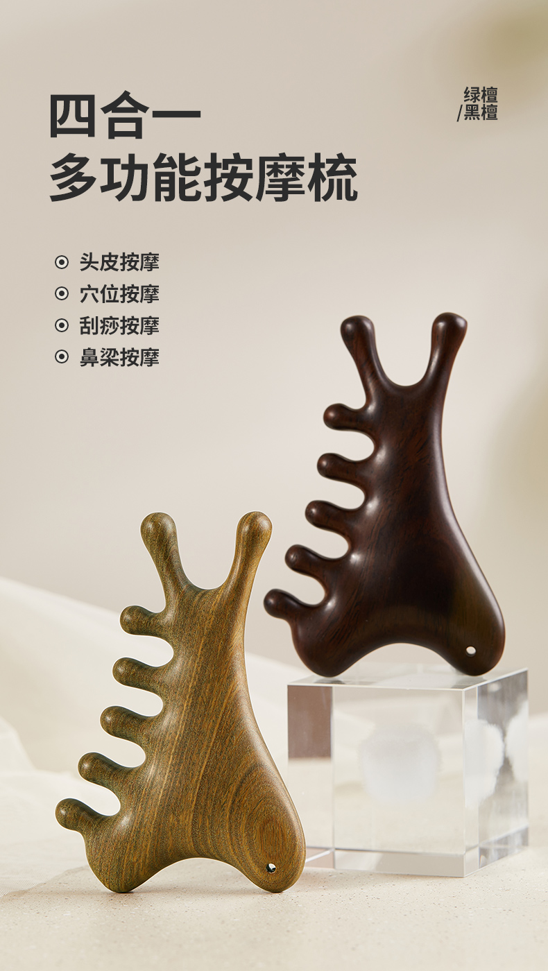 初心| 经络按摩梳黑檀牛角绿檀绵羊角送人送礼梳子