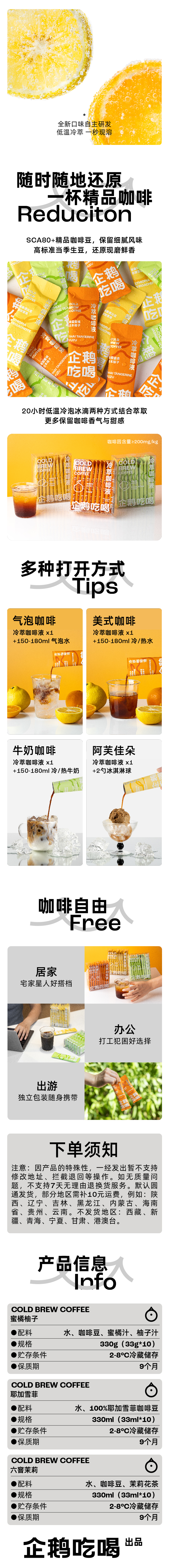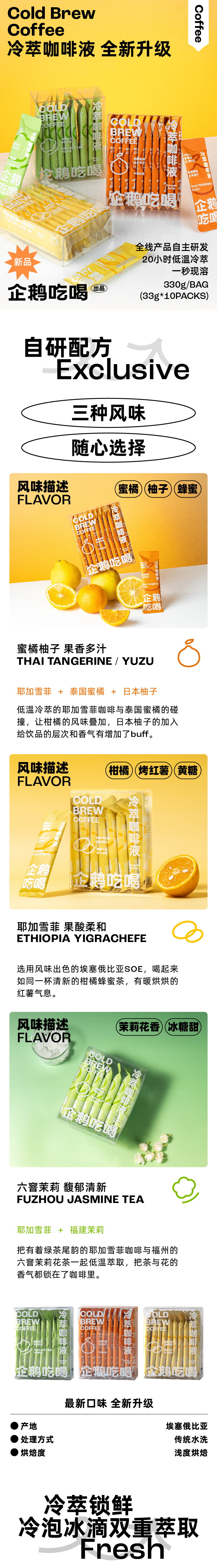 企鹅吃喝|冷萃咖啡液2盒装3盒装 330ml/盒 蜜橘柚子 耶加雪菲 六窨茉莉(10包*33ml)*需冷藏保存