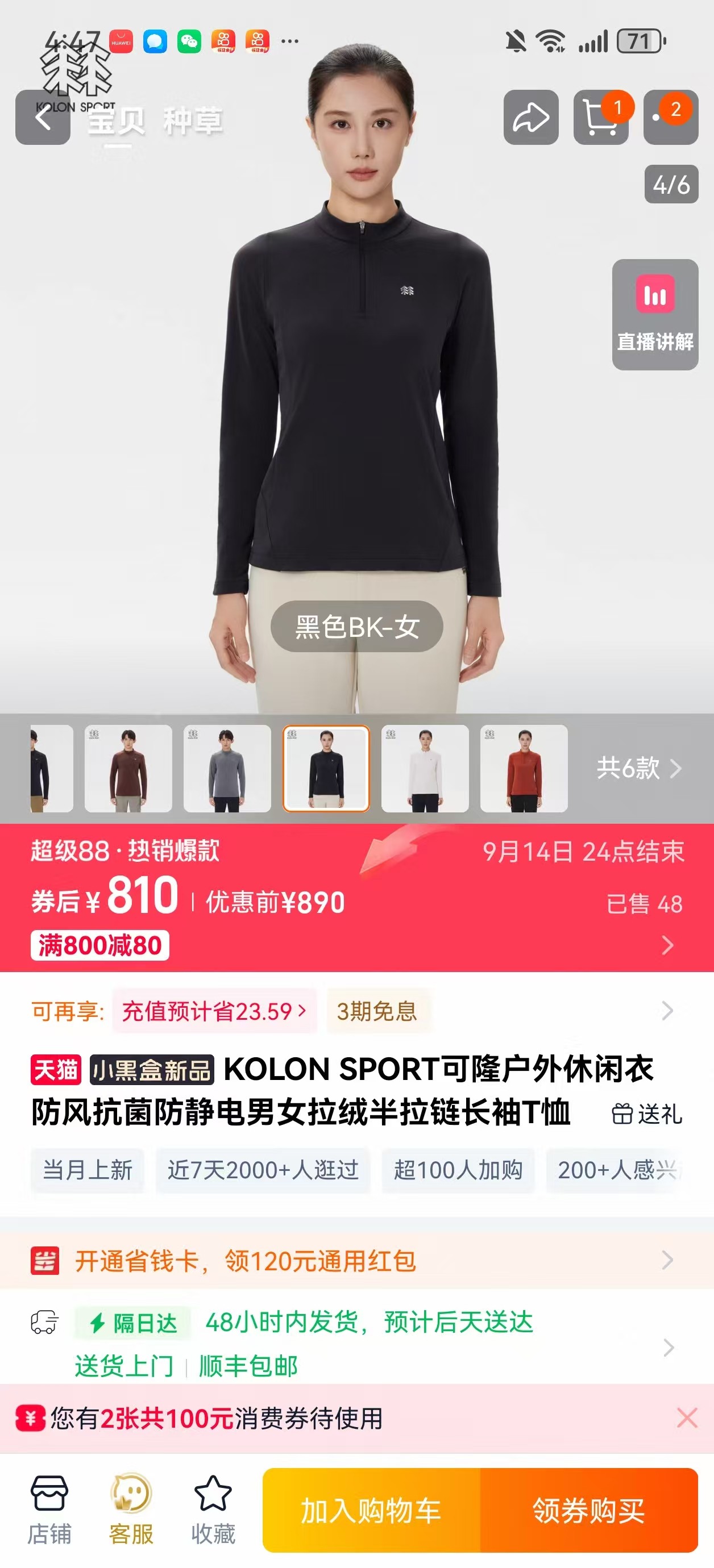 可隆春季女款半拉链立领春季打底衫上衣女款 女生 女士新款长袖T恤打底衫