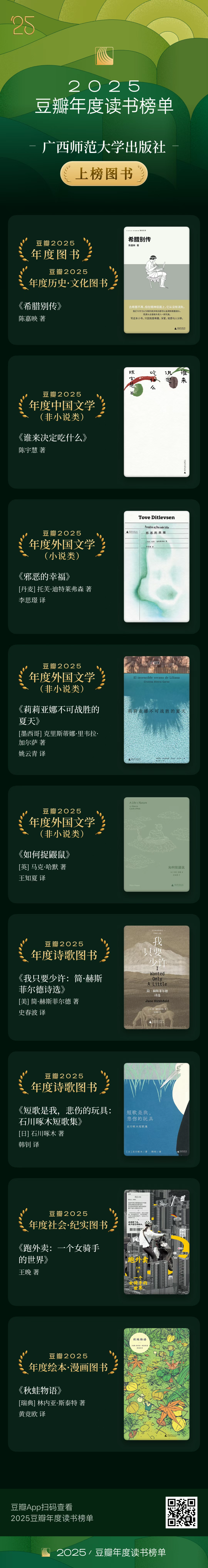 【广西师大社入选“豆瓣2025年度读书榜单”图书专区】 可选秋蛙物语/跑外卖:一个女骑手的世界/短歌是我,悲伤的玩具/的世界/短歌是我,悲伤的玩具等