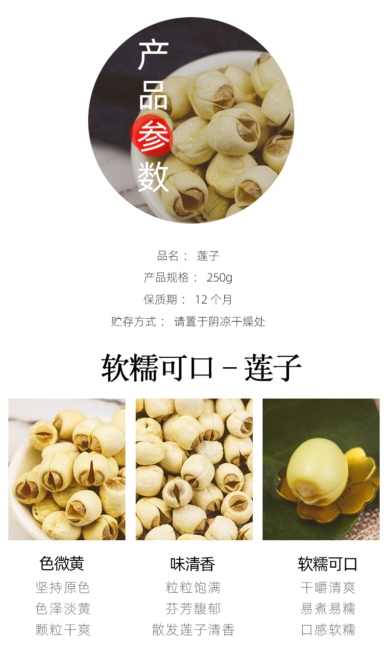 拾誉白莲子 去芯莲子无硫磺 煮粥熬汤 250g