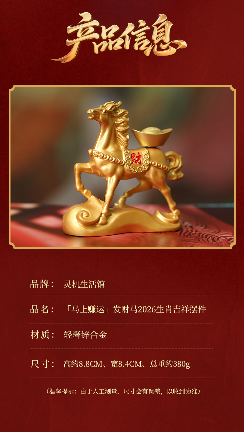 灵机生活馆「马上赚运」发财马2026生肖吉祥摆件家居车载卧室开业