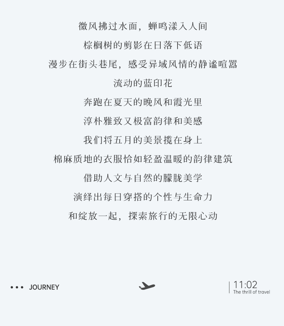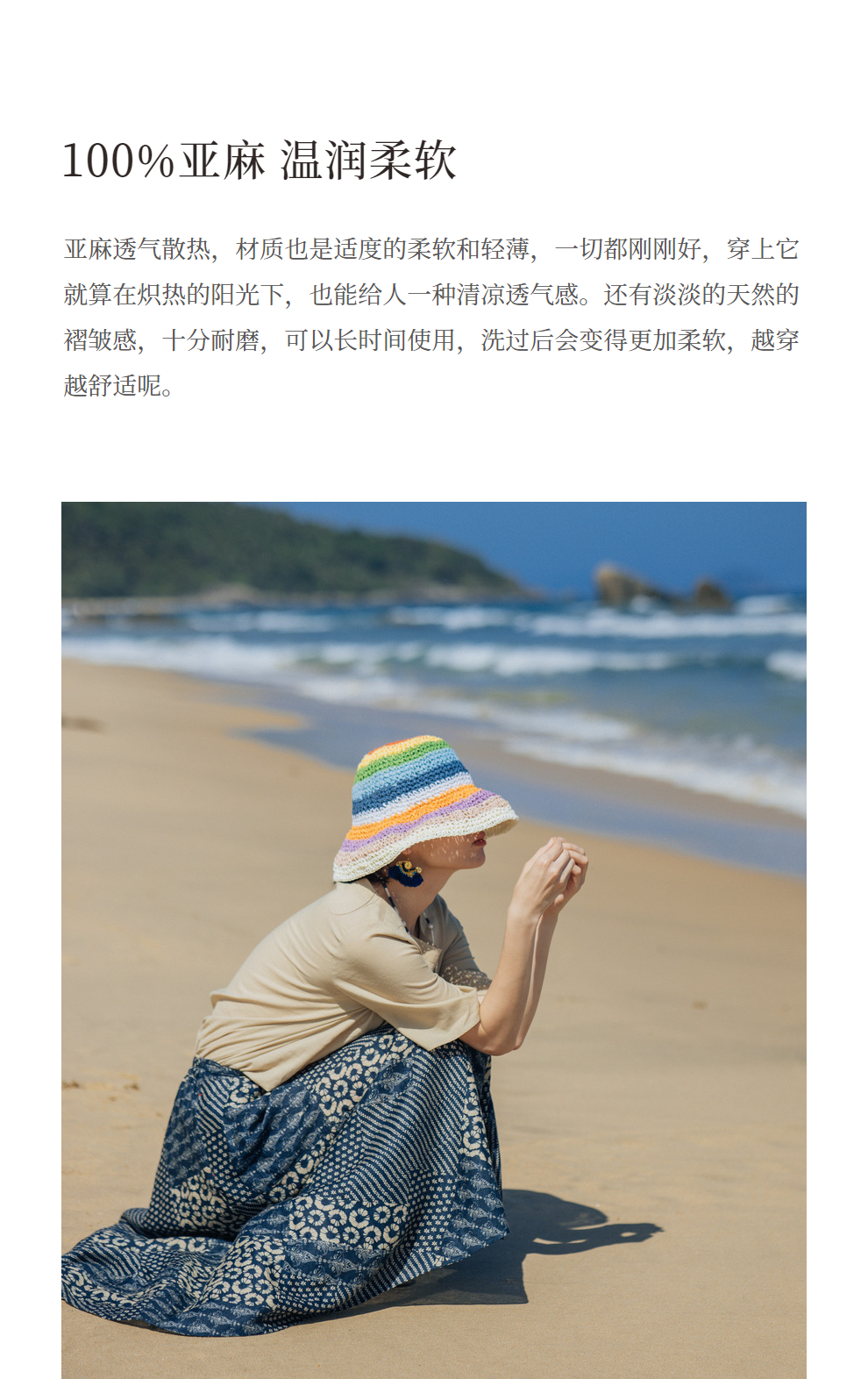 以天然亚麻为载体,融合热烈色彩与自在剪裁为身在城市、心怀远方的女性提供兼具美学与舒适的旅行着装