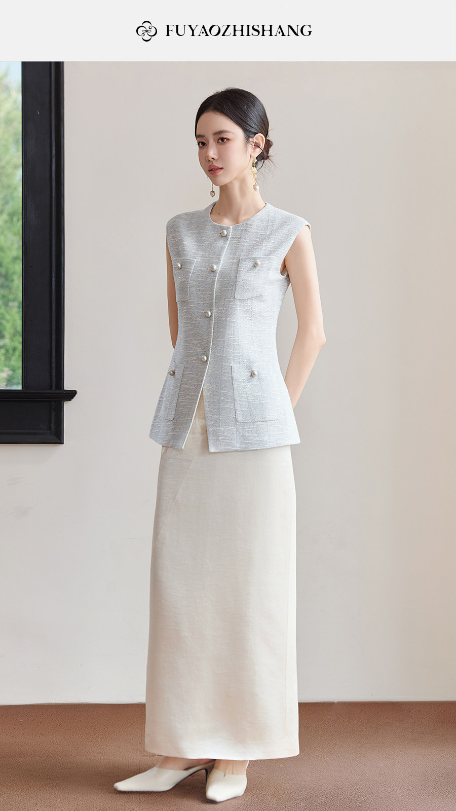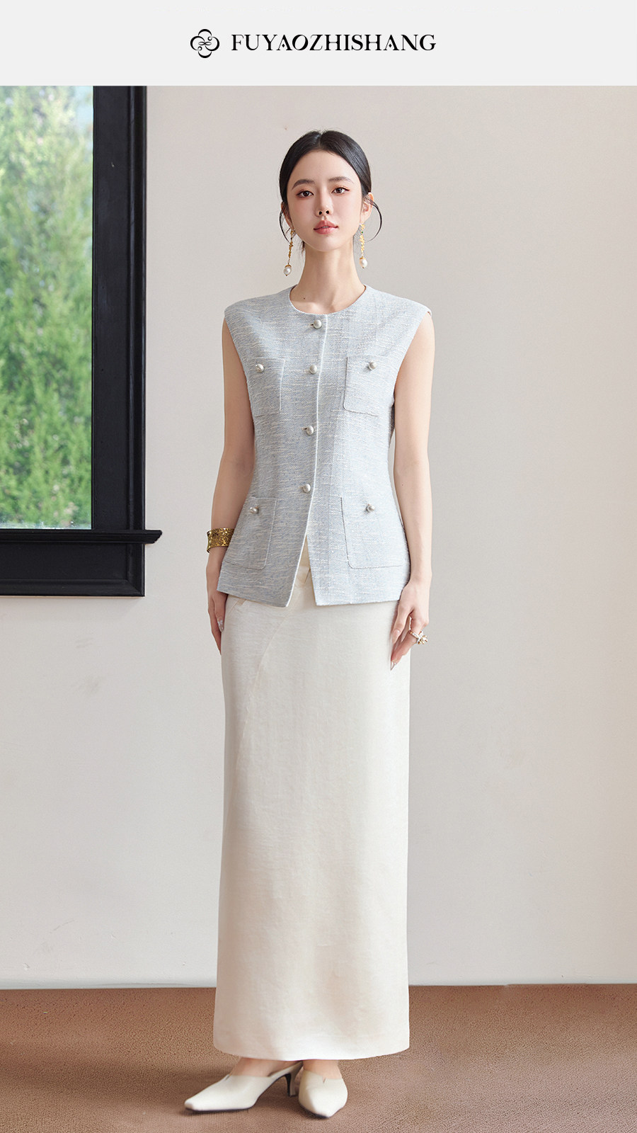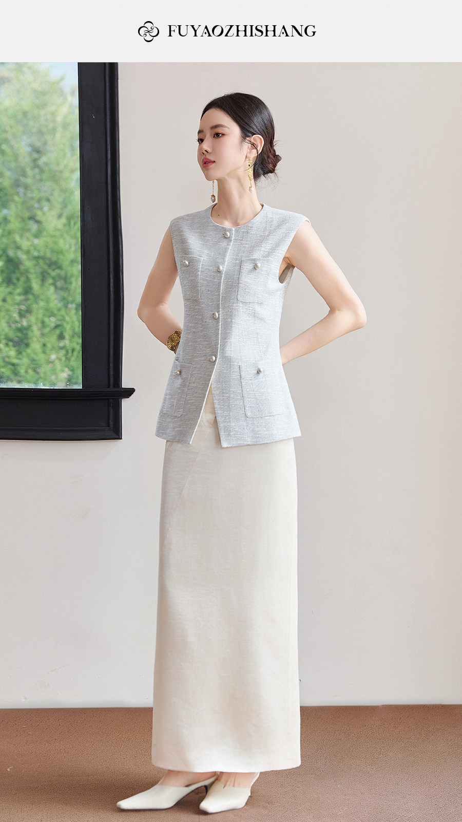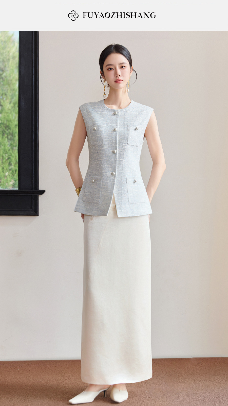 FUYAO扶摇直上 静奢新中式马甲套装女夏季小香风醋酸半身裙两件套