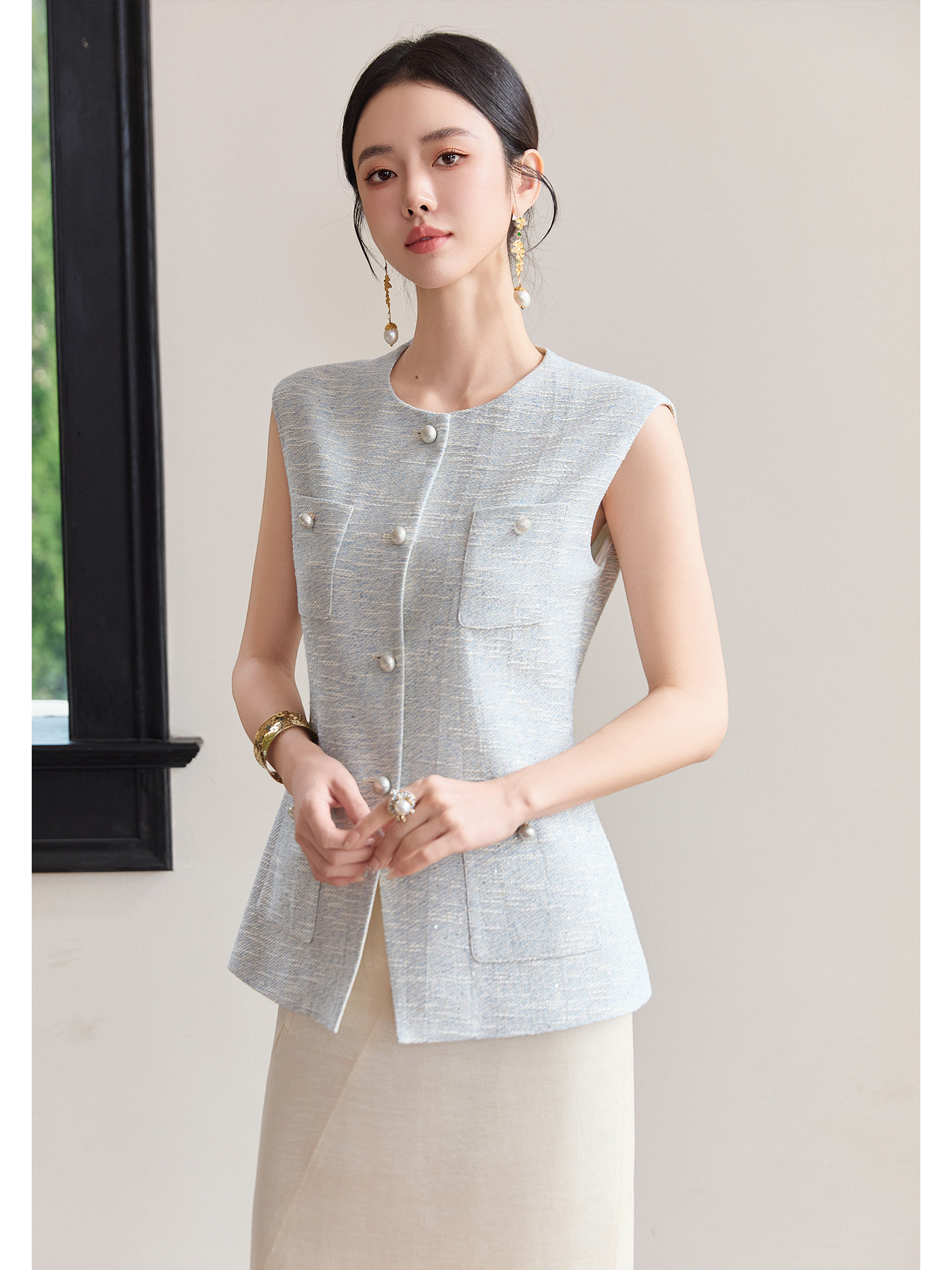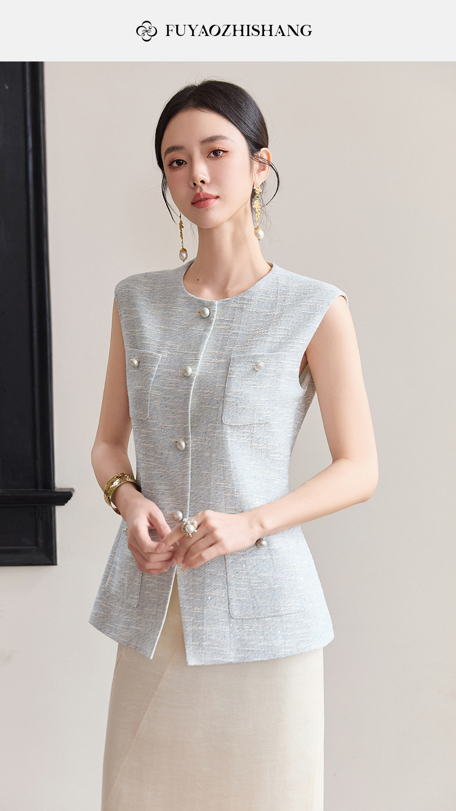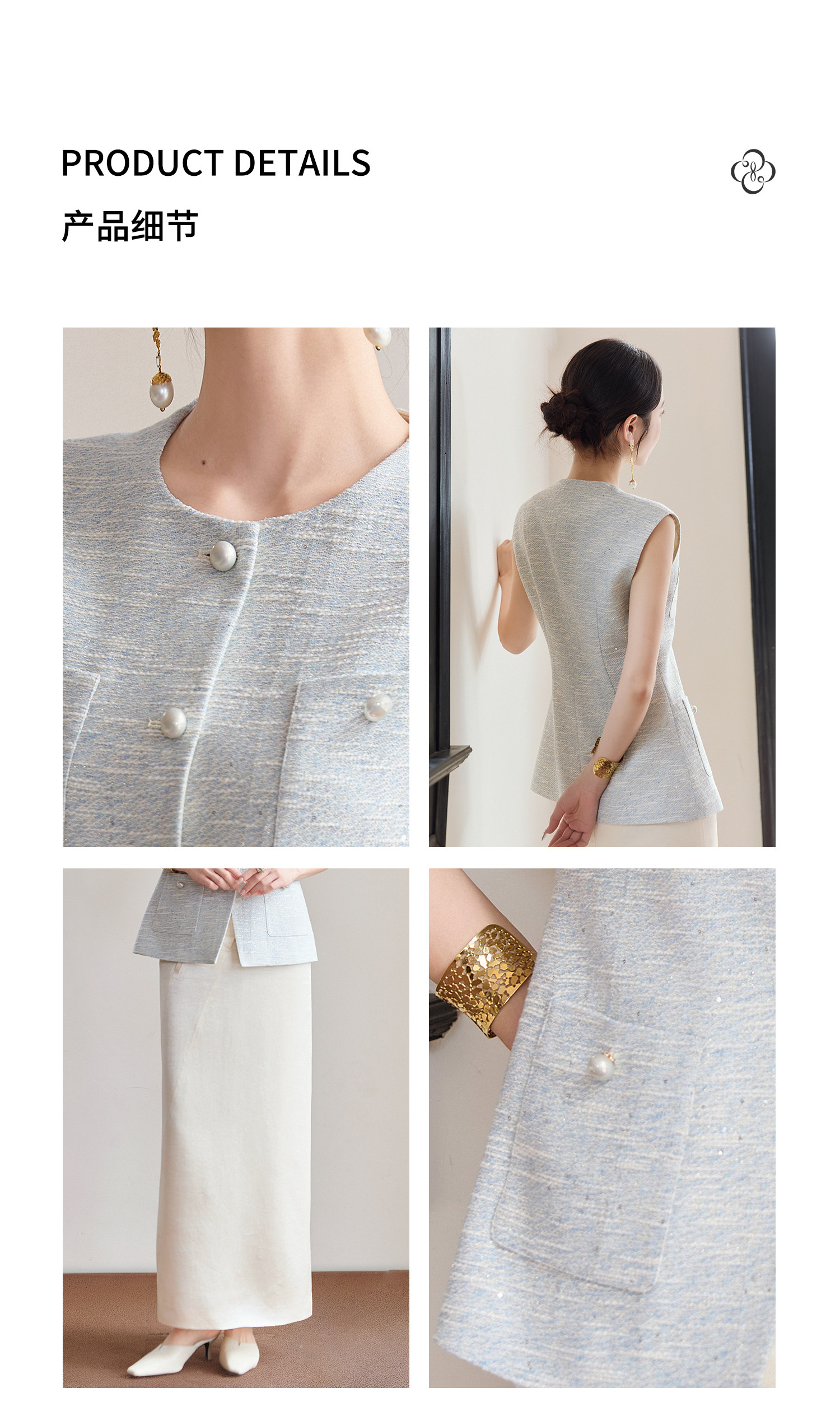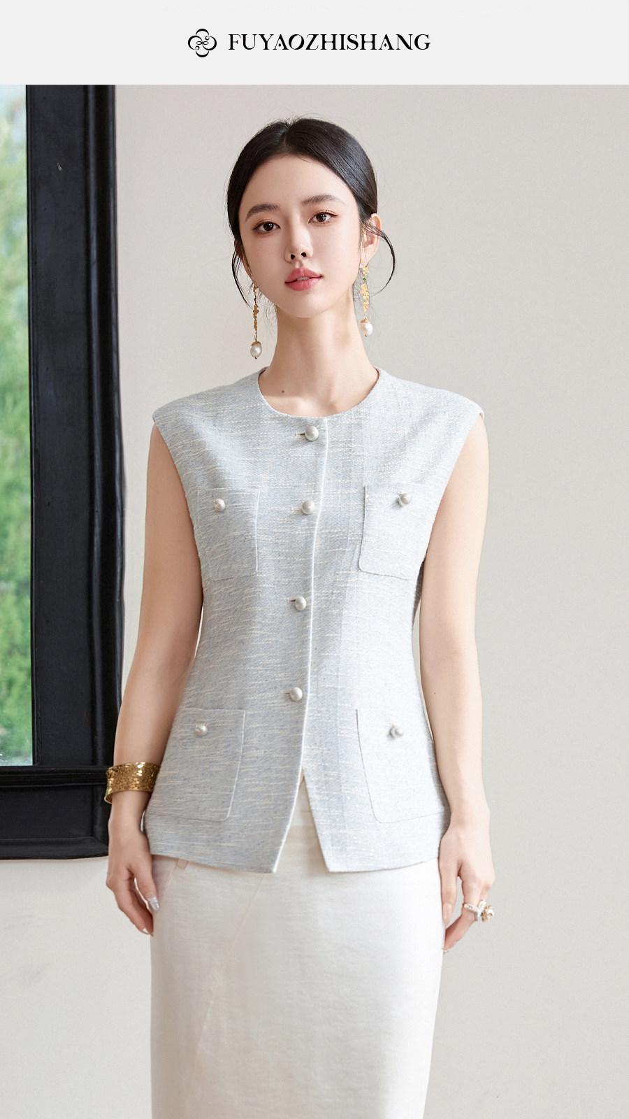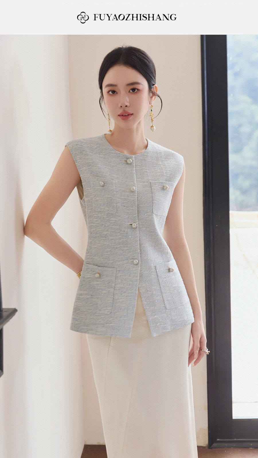 FUYAO扶摇直上 静奢新中式马甲套装女夏季小香风醋酸半身裙两件套