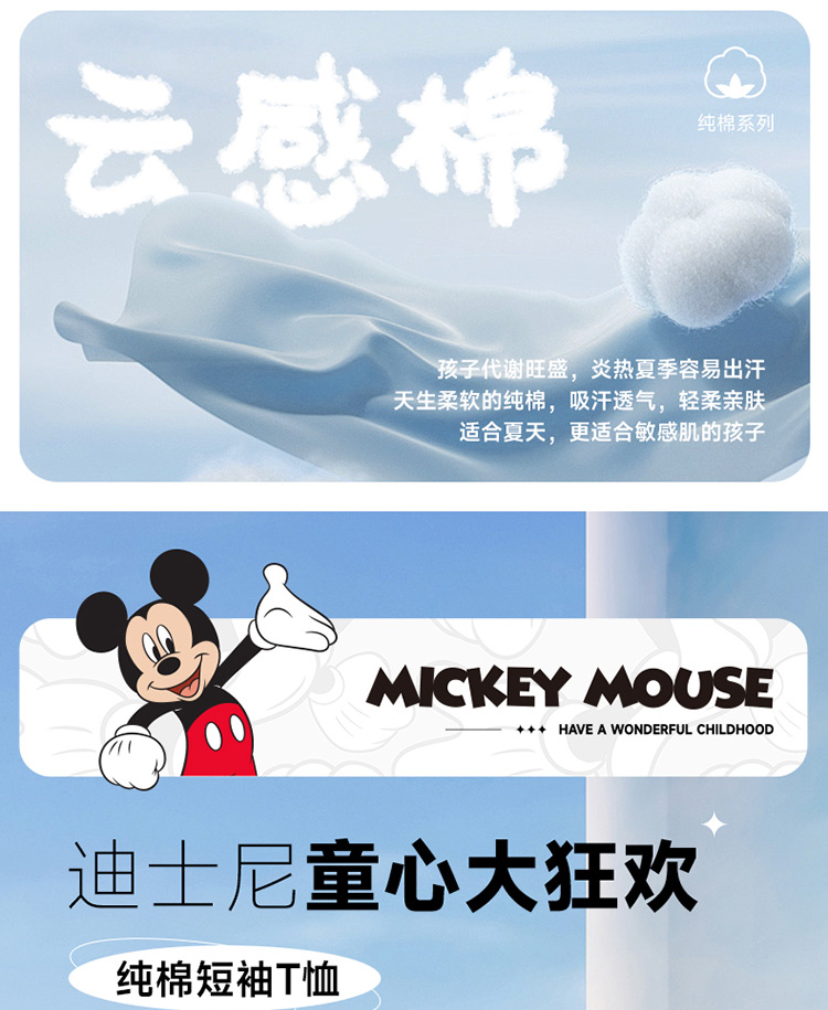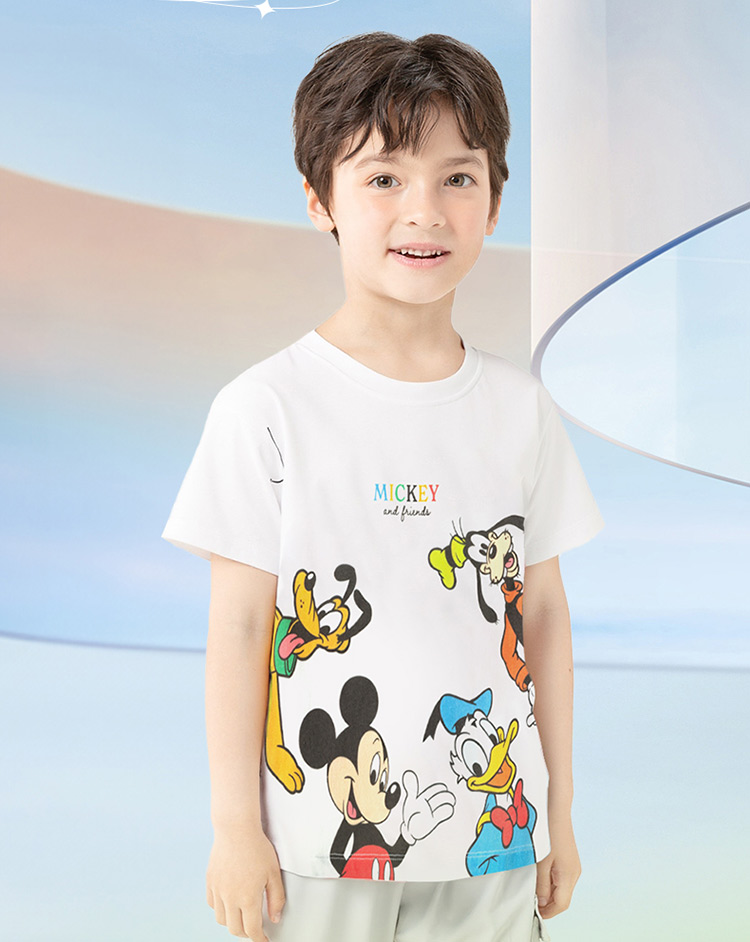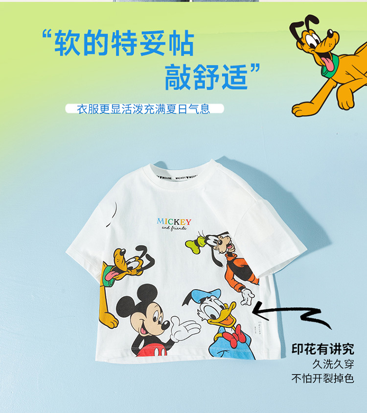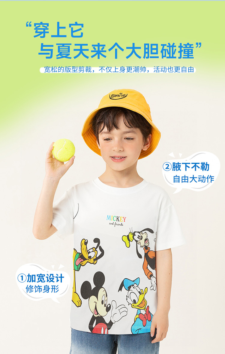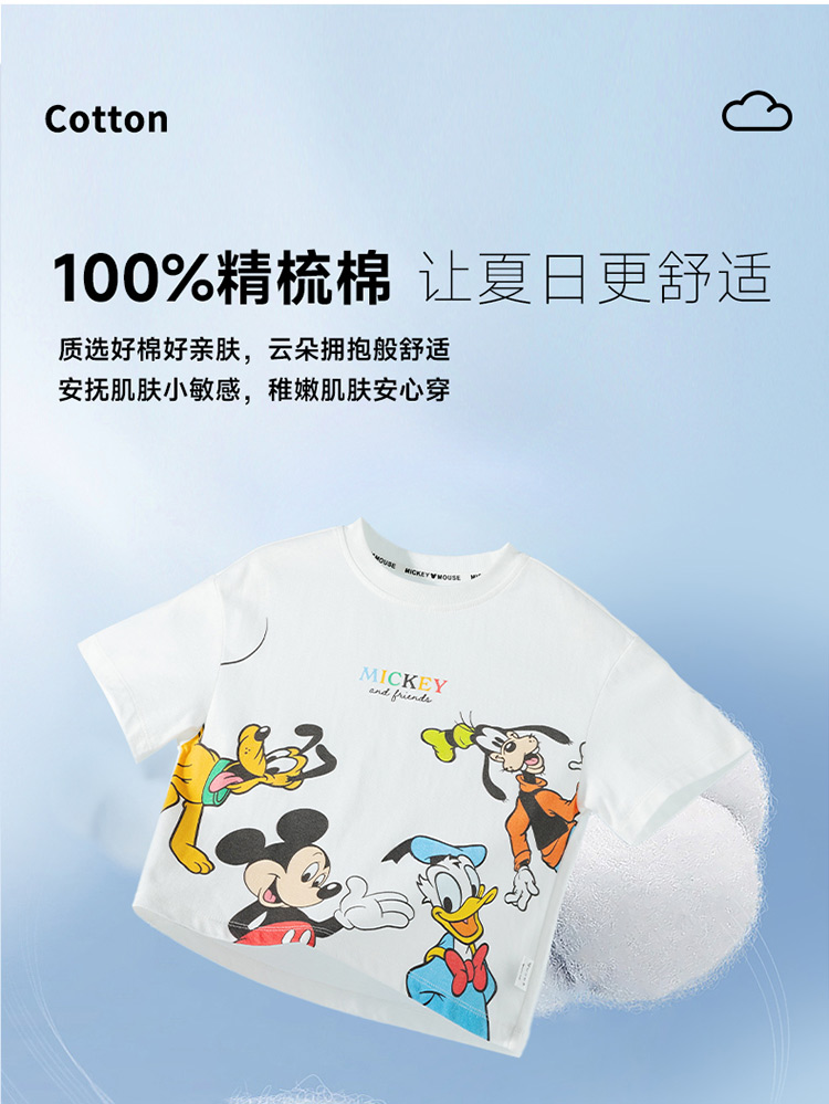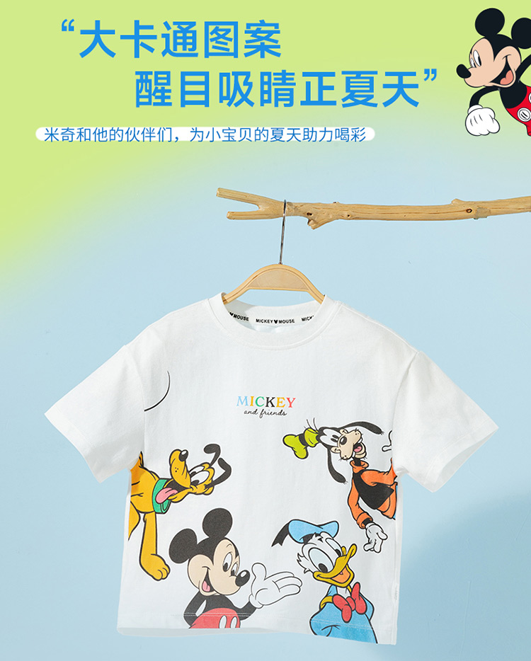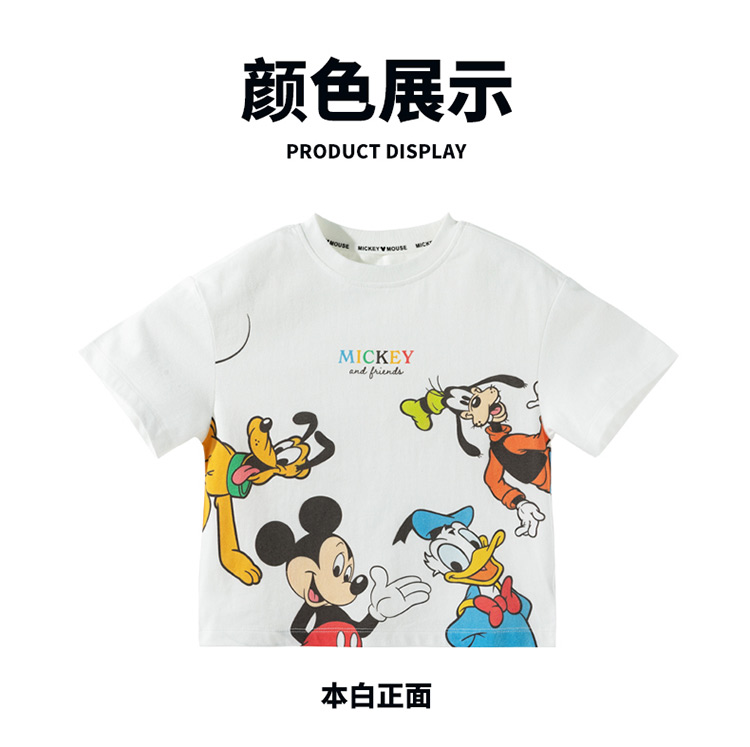 【5A抑菌】迪士尼25夏季新男童纯棉透气短袖儿童卡通米奇印花T恤打底衫ZD2ES038*