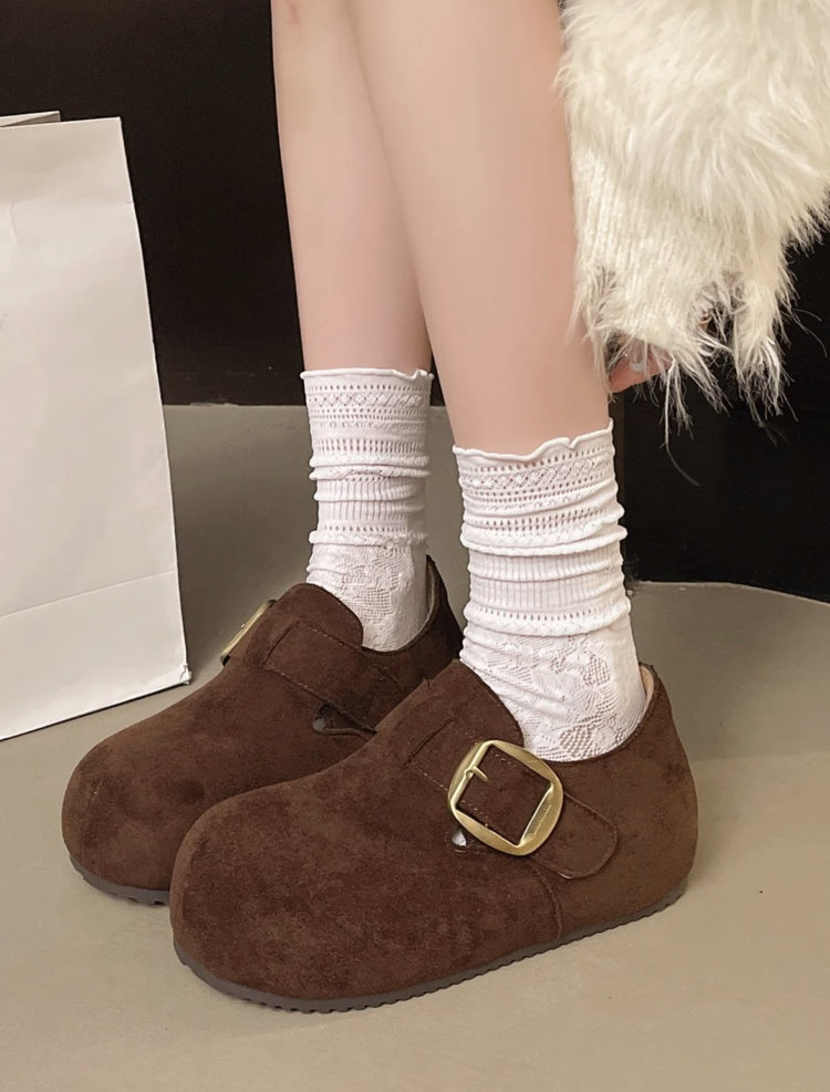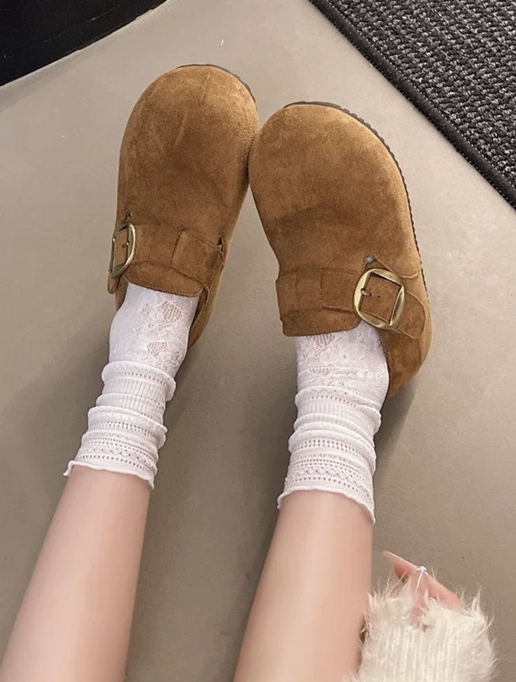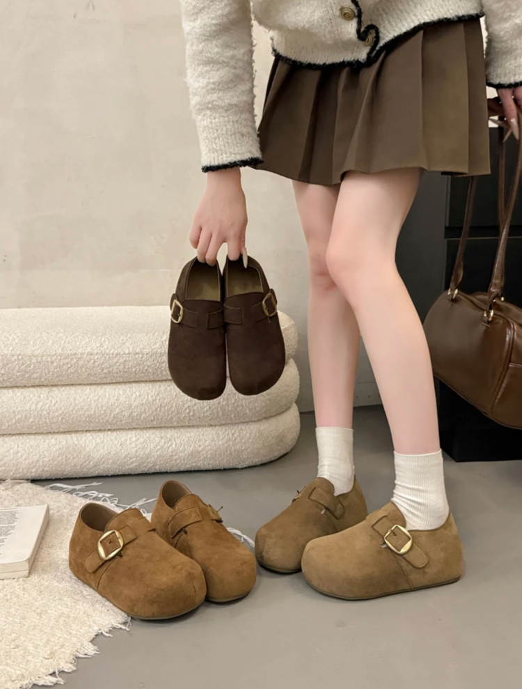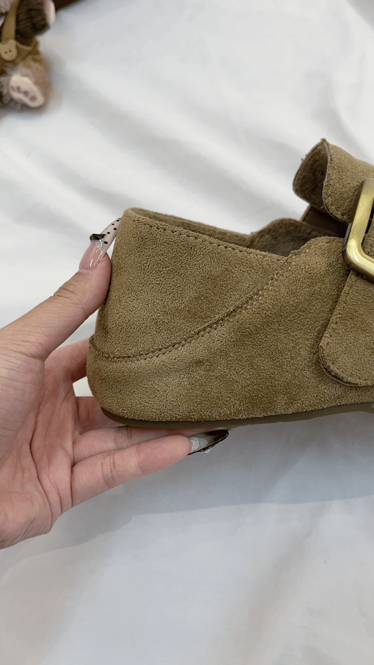 鞋面绒面触感很好+ 金属扣带也太戳复古党了吧!