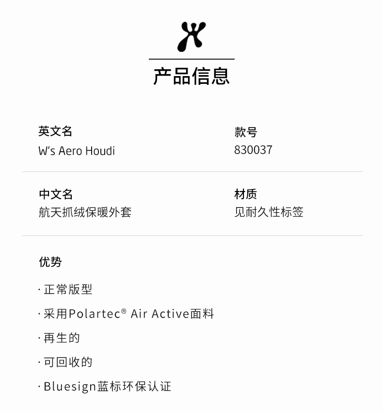 HOUDINI胡丁尼 Aero Houdi 航天户外女运动连帽抓绒衣外套 830037