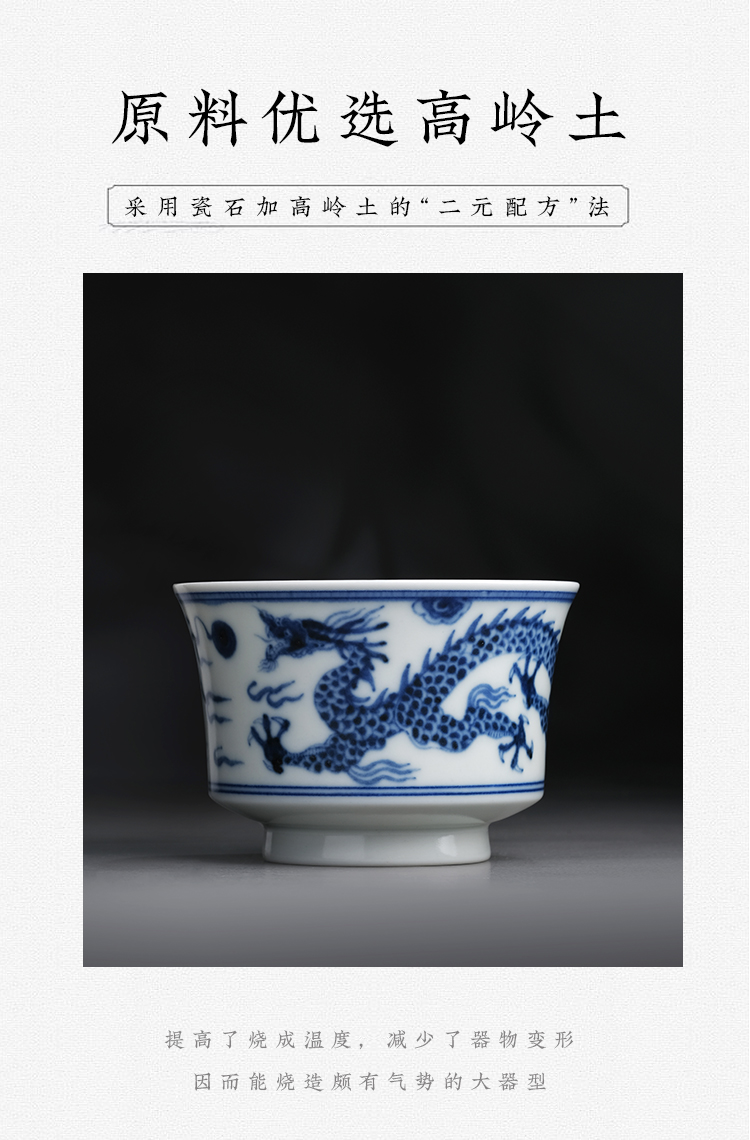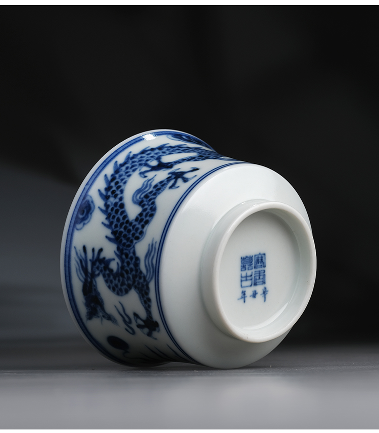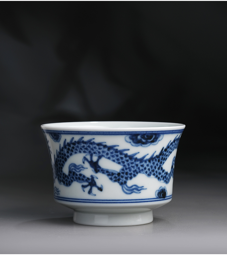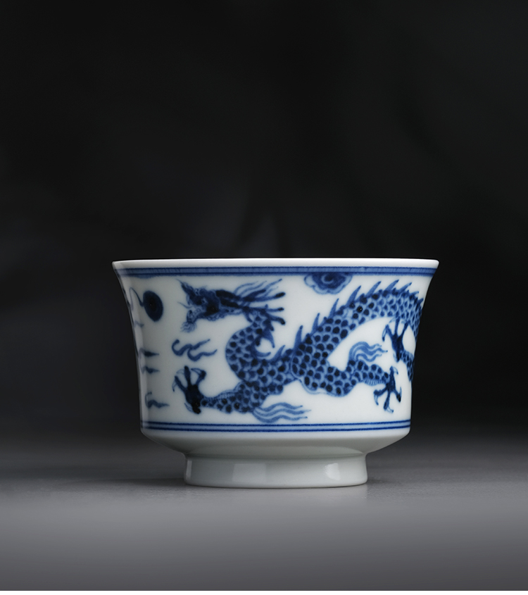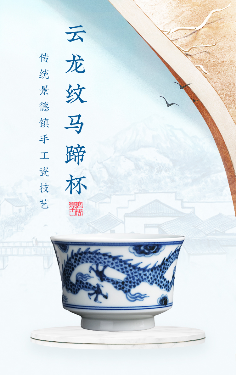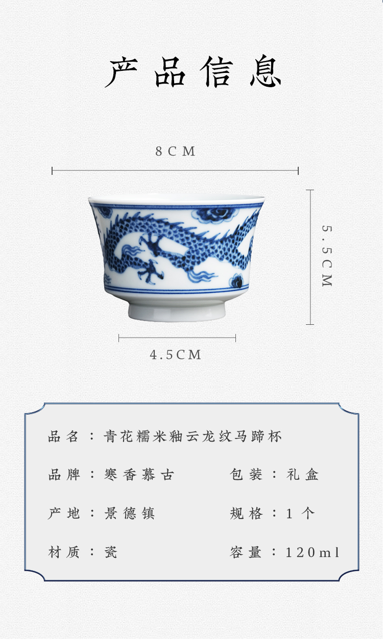 寒香慕古元明青花糯米釉云龙纹马蹄杯