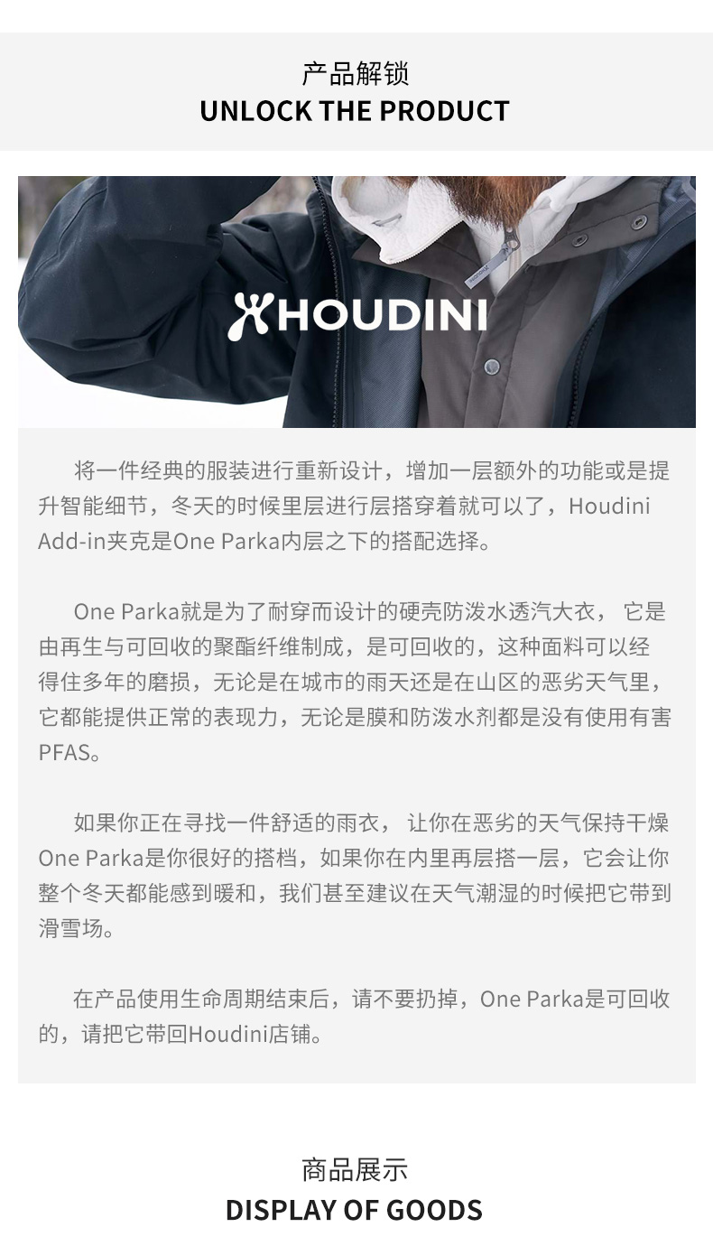 HOUDINI胡丁尼One Parka 唯衣男春秋防风防水保暖派克大衣冲锋衣 248624