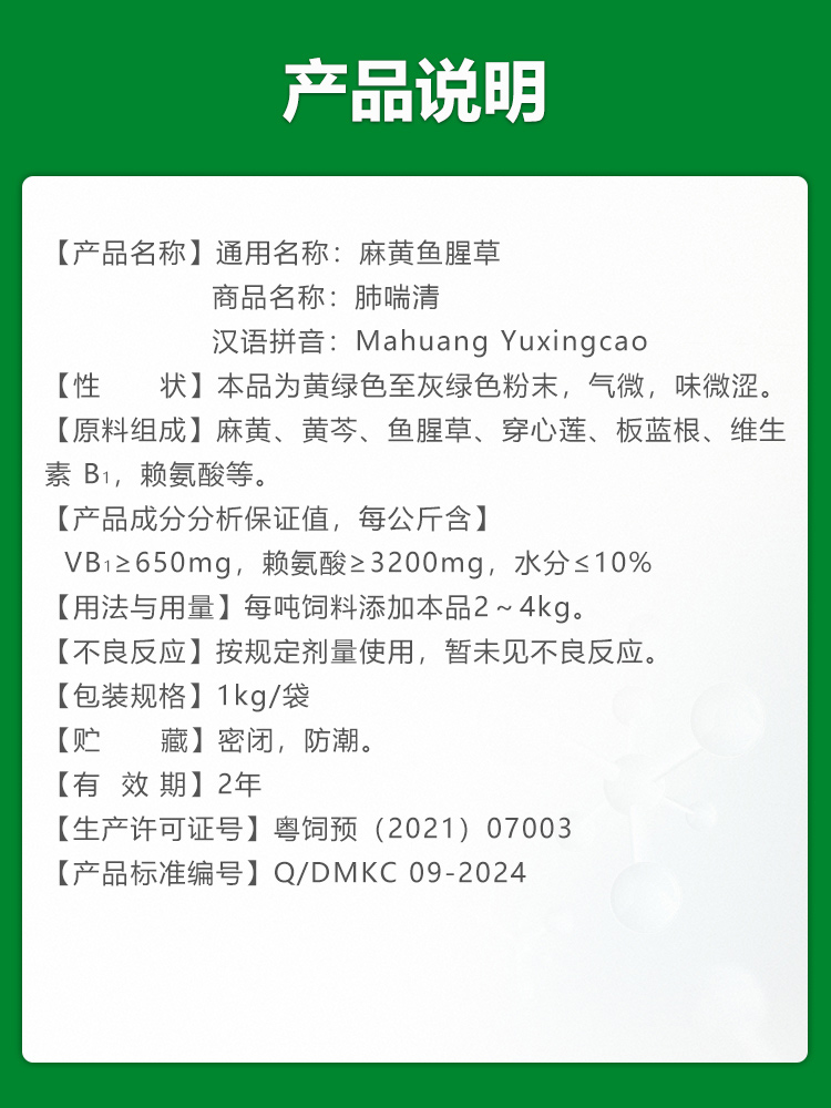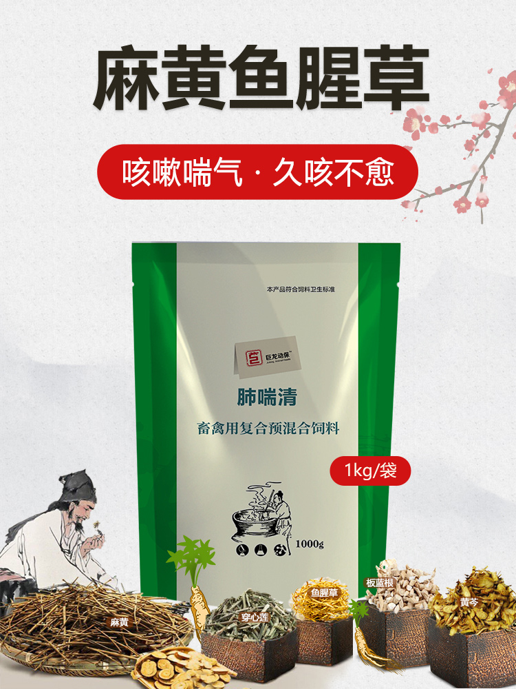 【肺喘清】巨龙动保肺喘清麻黄鱼腥草散1000g纯中药制剂