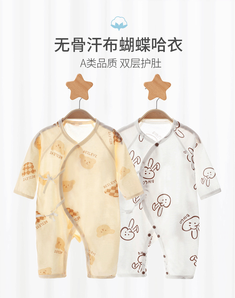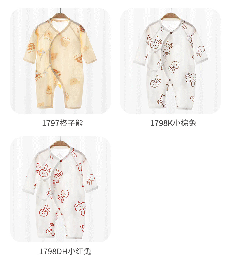 【新生儿夏季薄纯棉连体衣】婴儿婴幼儿和尚服宝宝哈衣长袖爬服