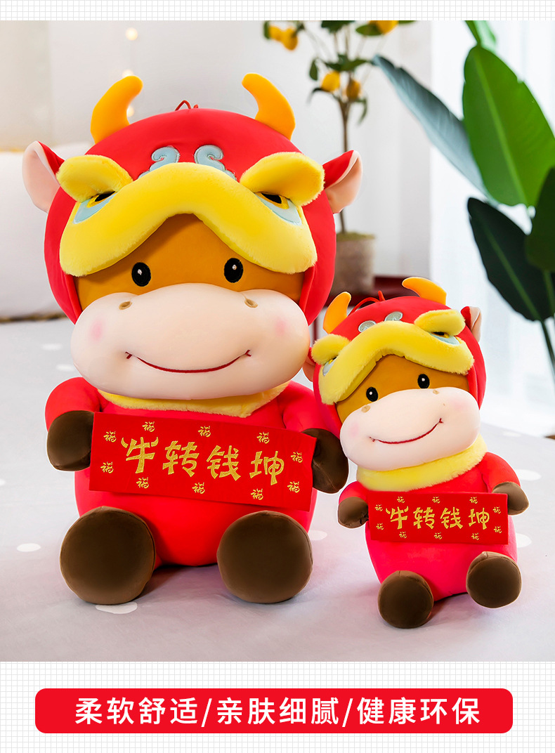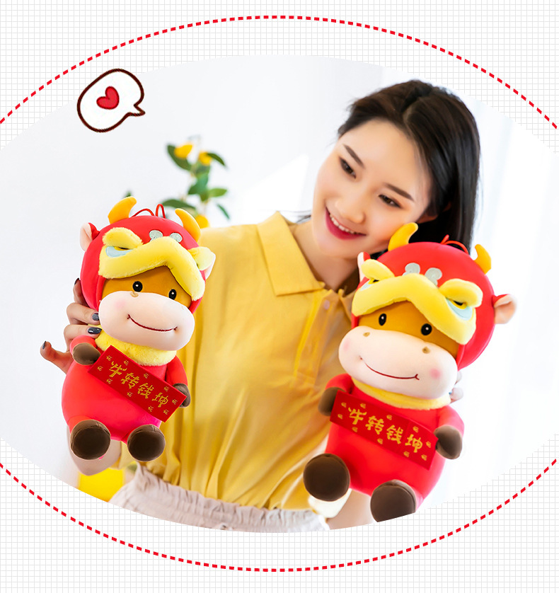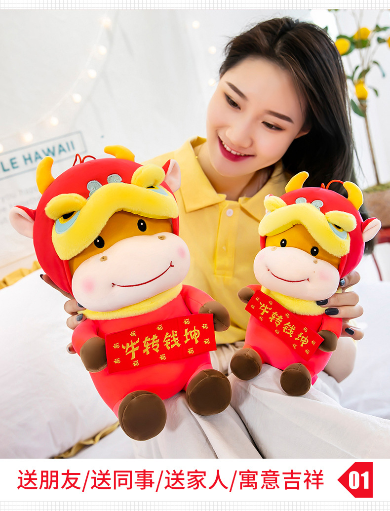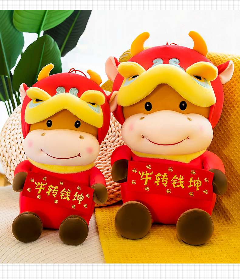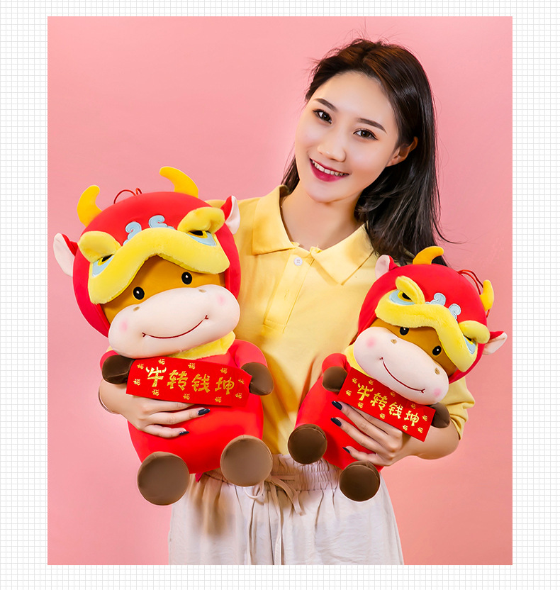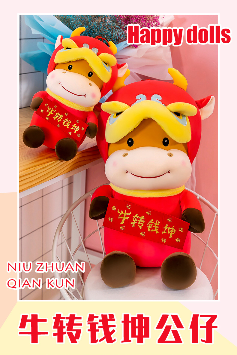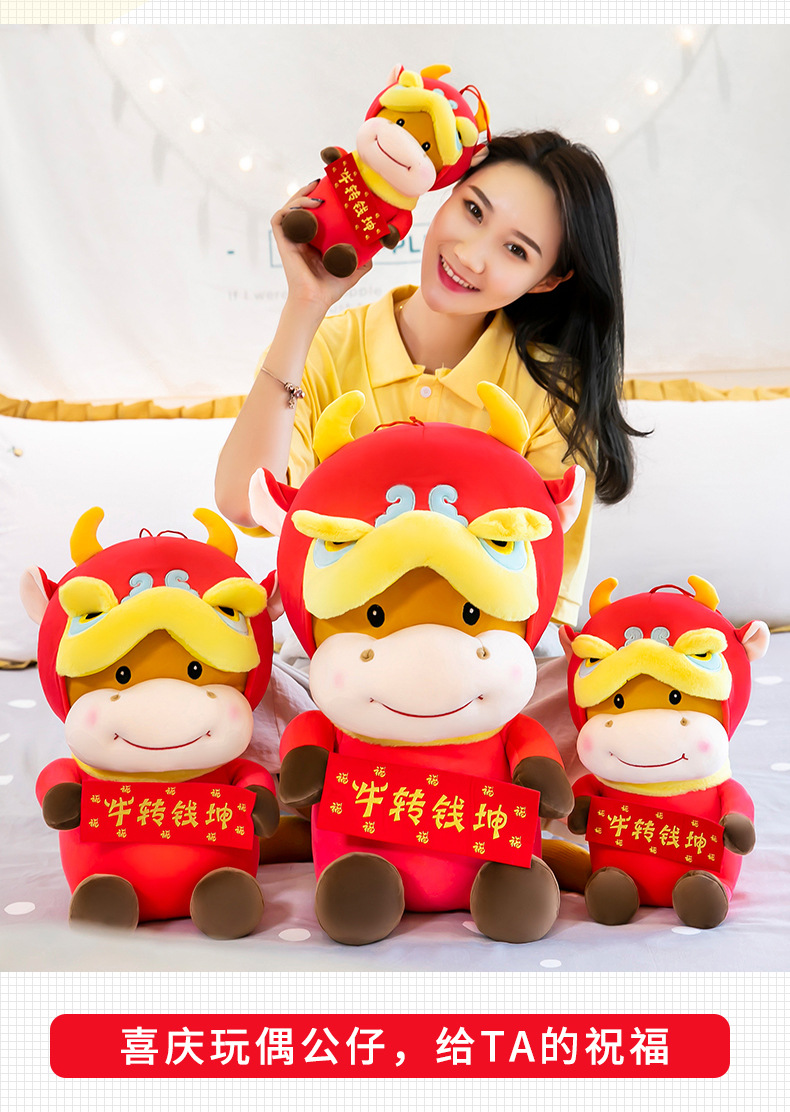 【2021牛年吉祥物可爱舞狮牛生肖牛】毛绒玩具公司年会活动礼品