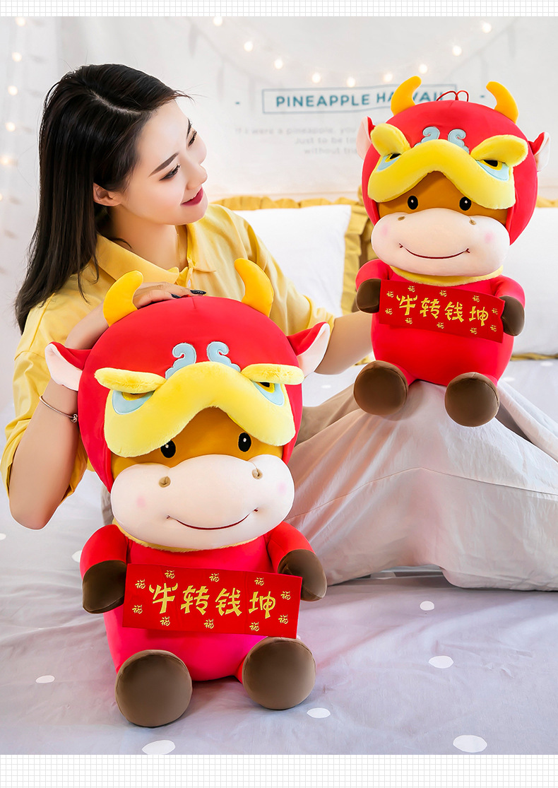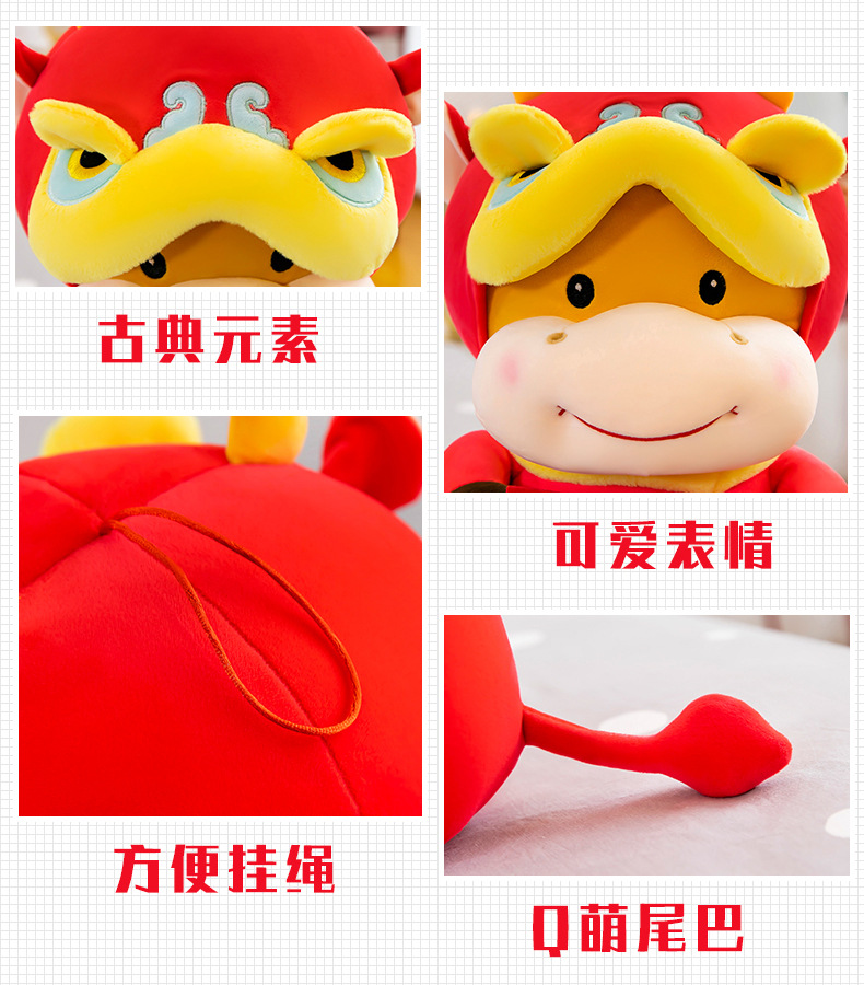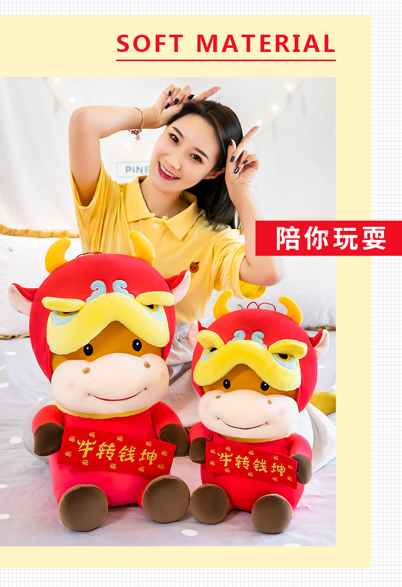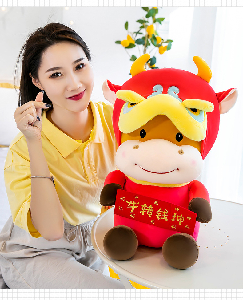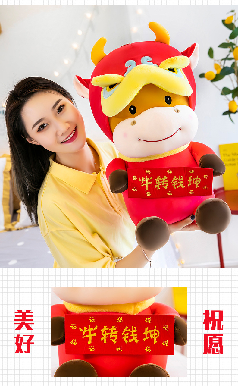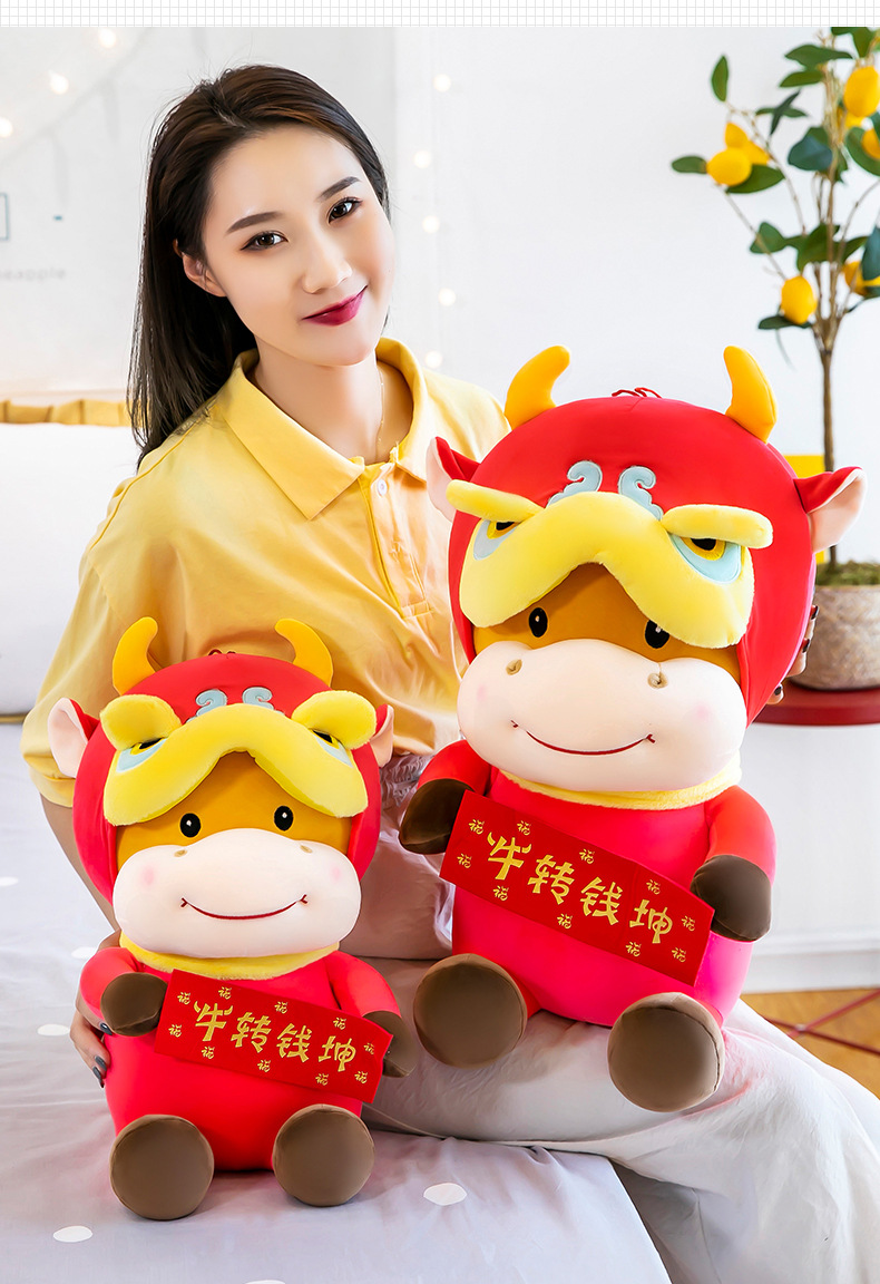【2021牛年吉祥物可爱舞狮牛生肖牛】毛绒玩具公司年会活动礼品